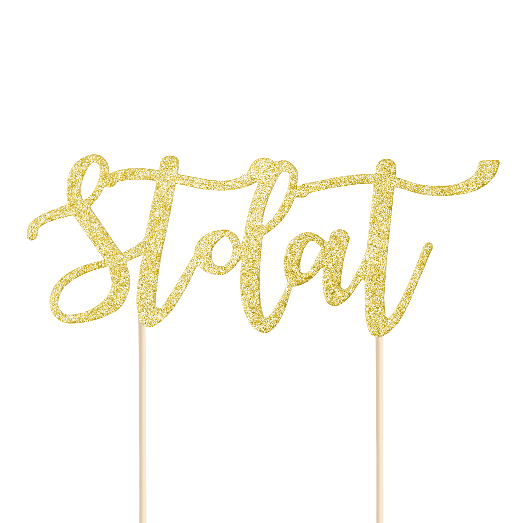 Topper na tort Sto lat brokatowy złoty 1szt.