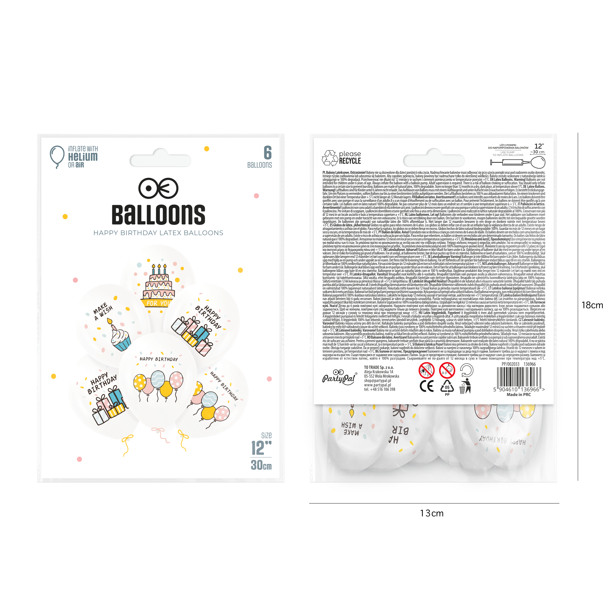 Balony urodzinowe Happy Birthday wielokolorowe 12cali 6szt. zestaw