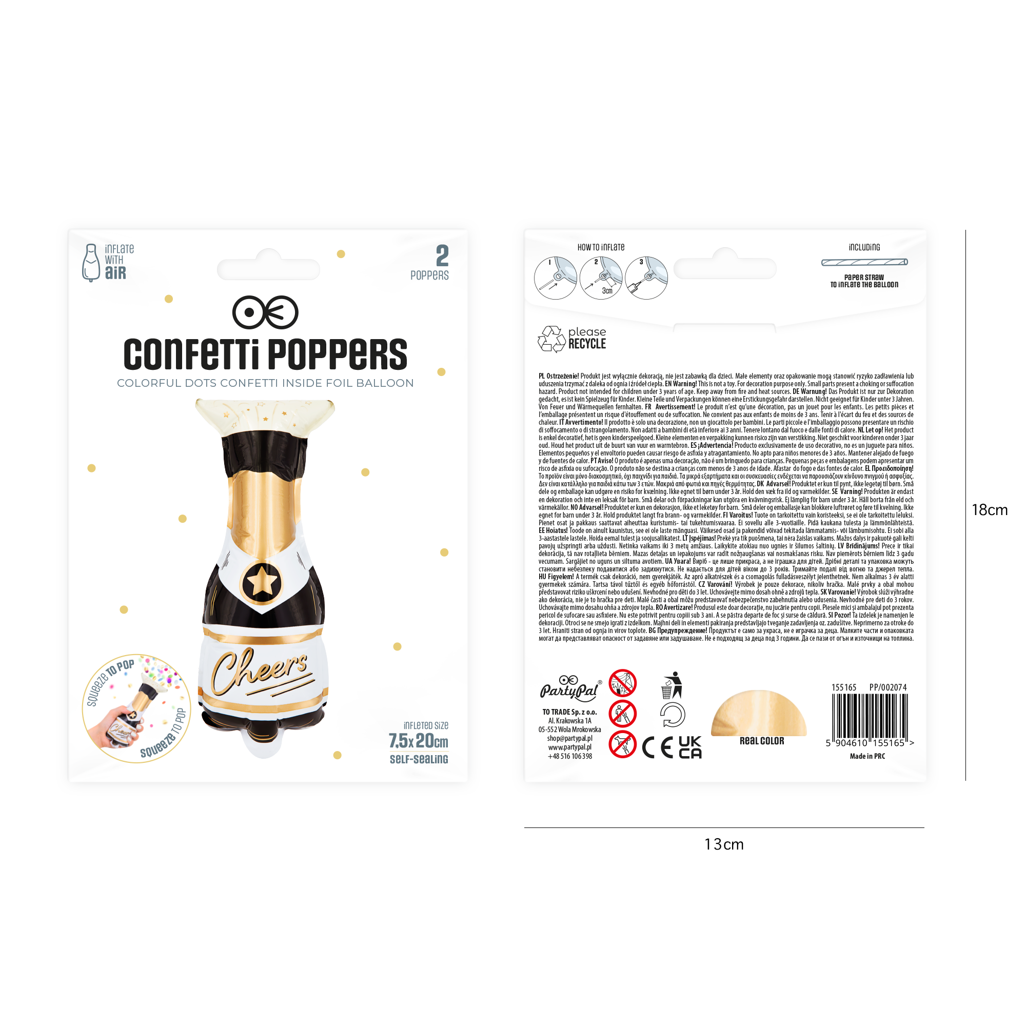 Balon foliowy Butelka Cheers strzelające konfetti 7,5x20cm