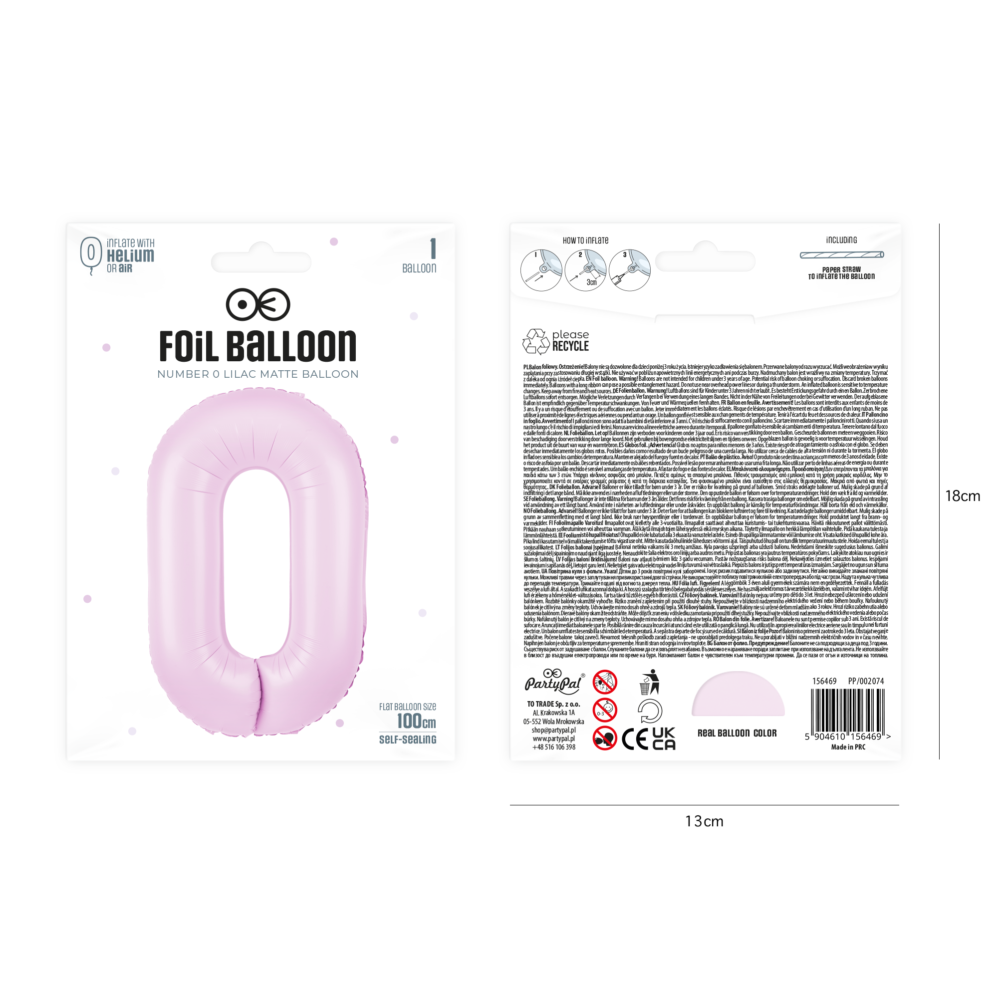 Balon foliowy cyfra 0 liliowy matowy 100cm