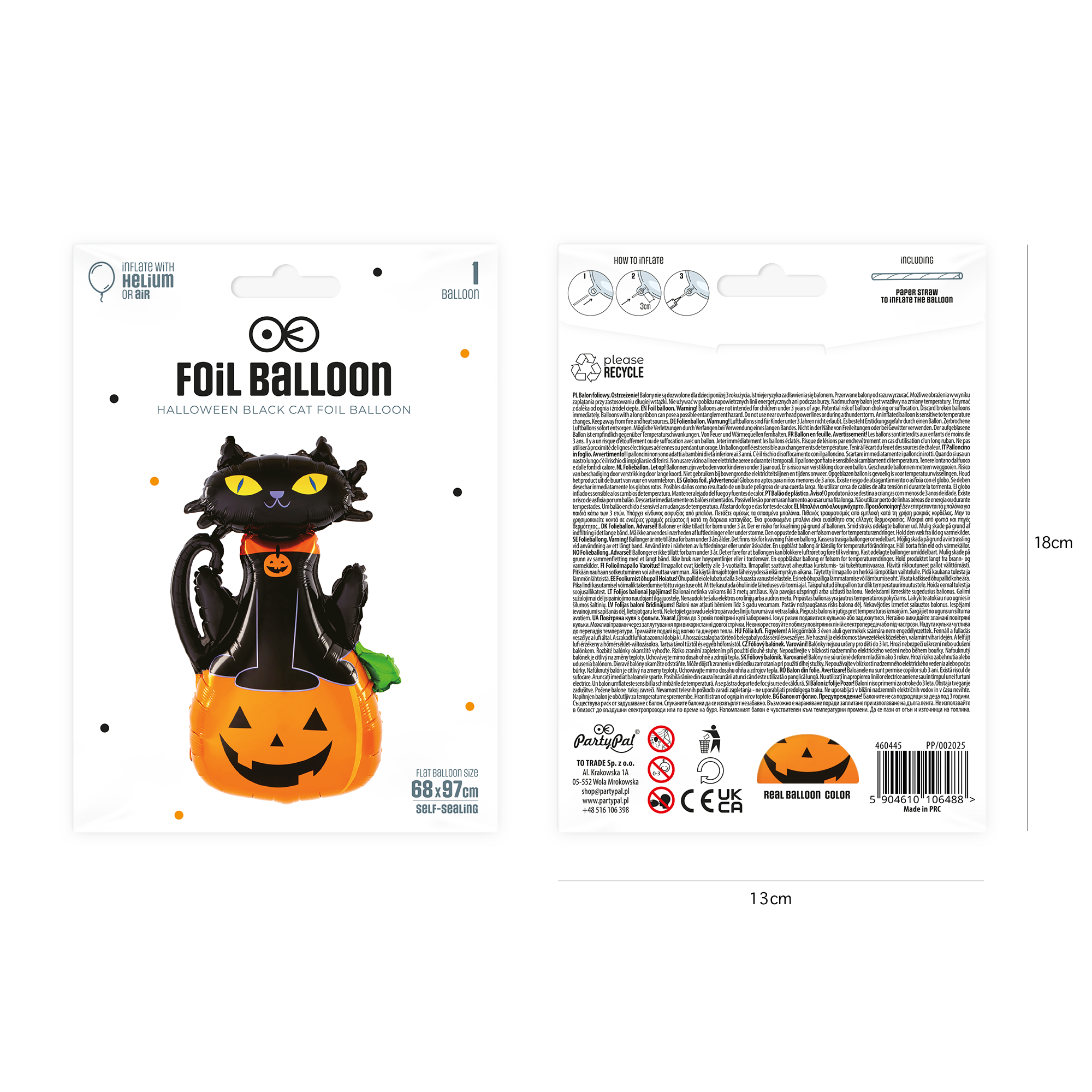 Balon foliowy Dynia z czarnym kotem Halloween 68x97cm