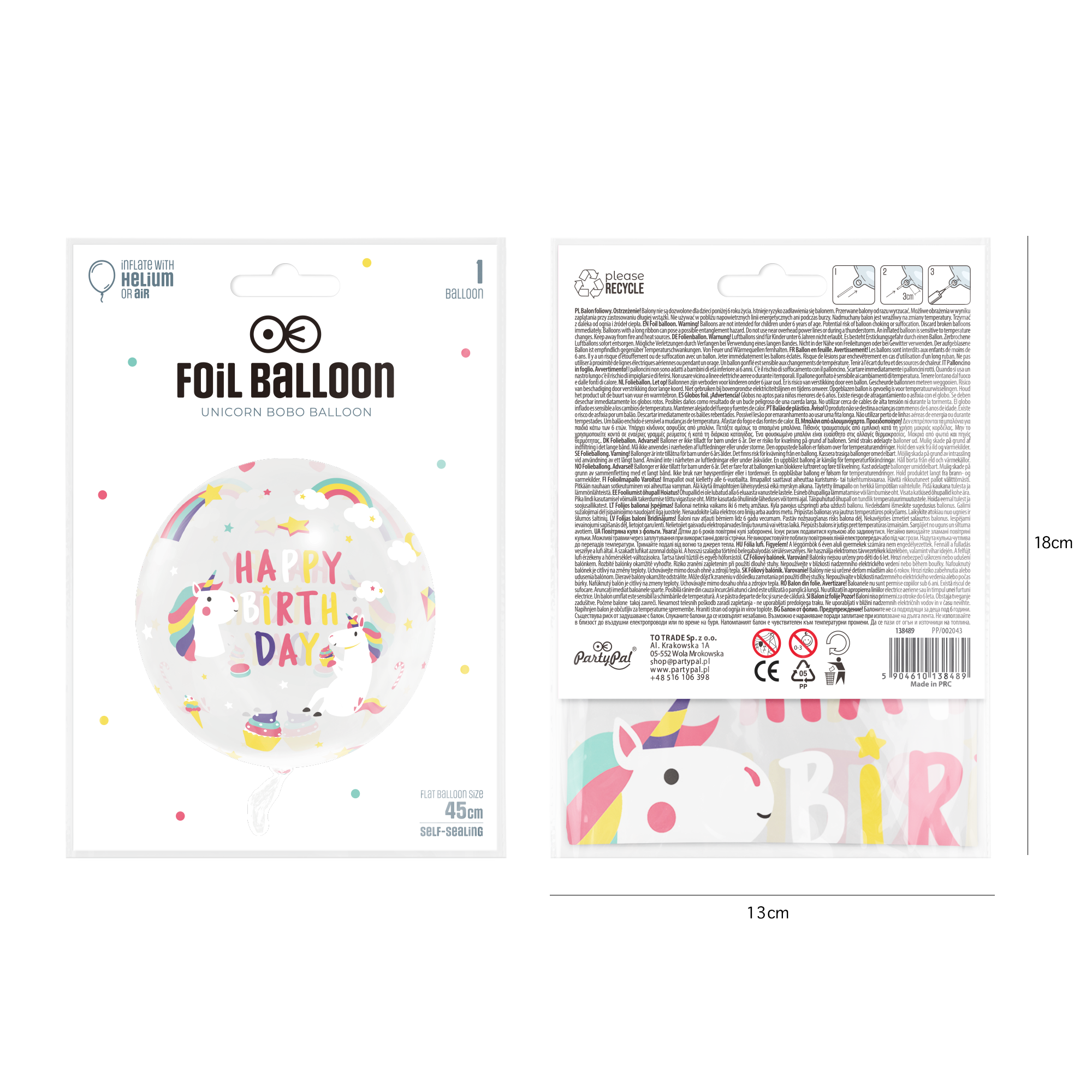 Balon foliowy przezroczysty okrągły Jednorożec 45cm 1szt.