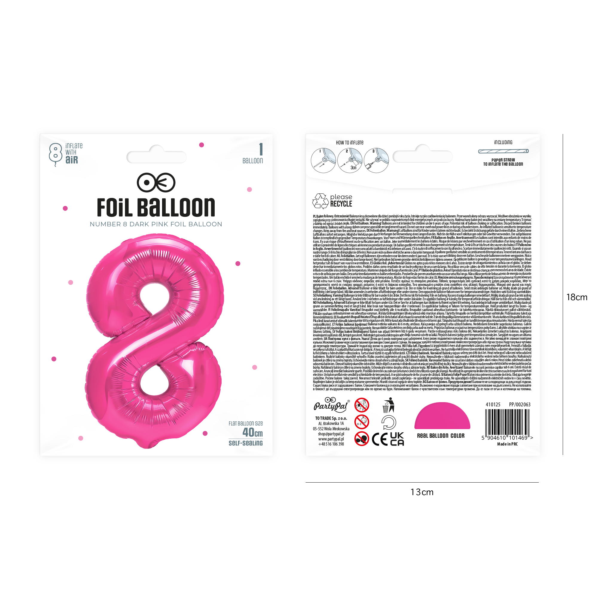 Balon foliowy cyfra 8 ciemnoróżowy 40cm