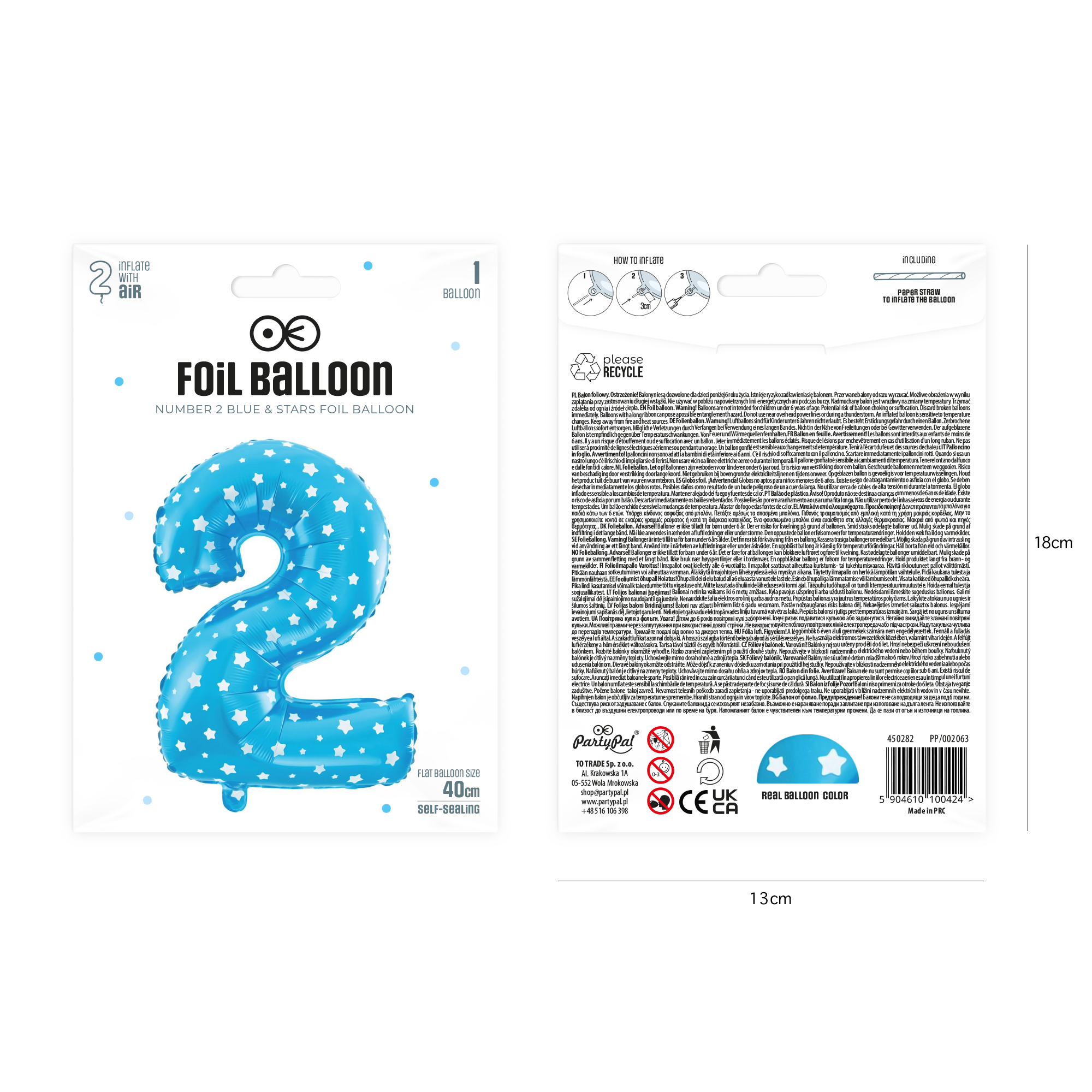 Balon foliowy Gwiazdki cyfra 2 niebieski 40cm
