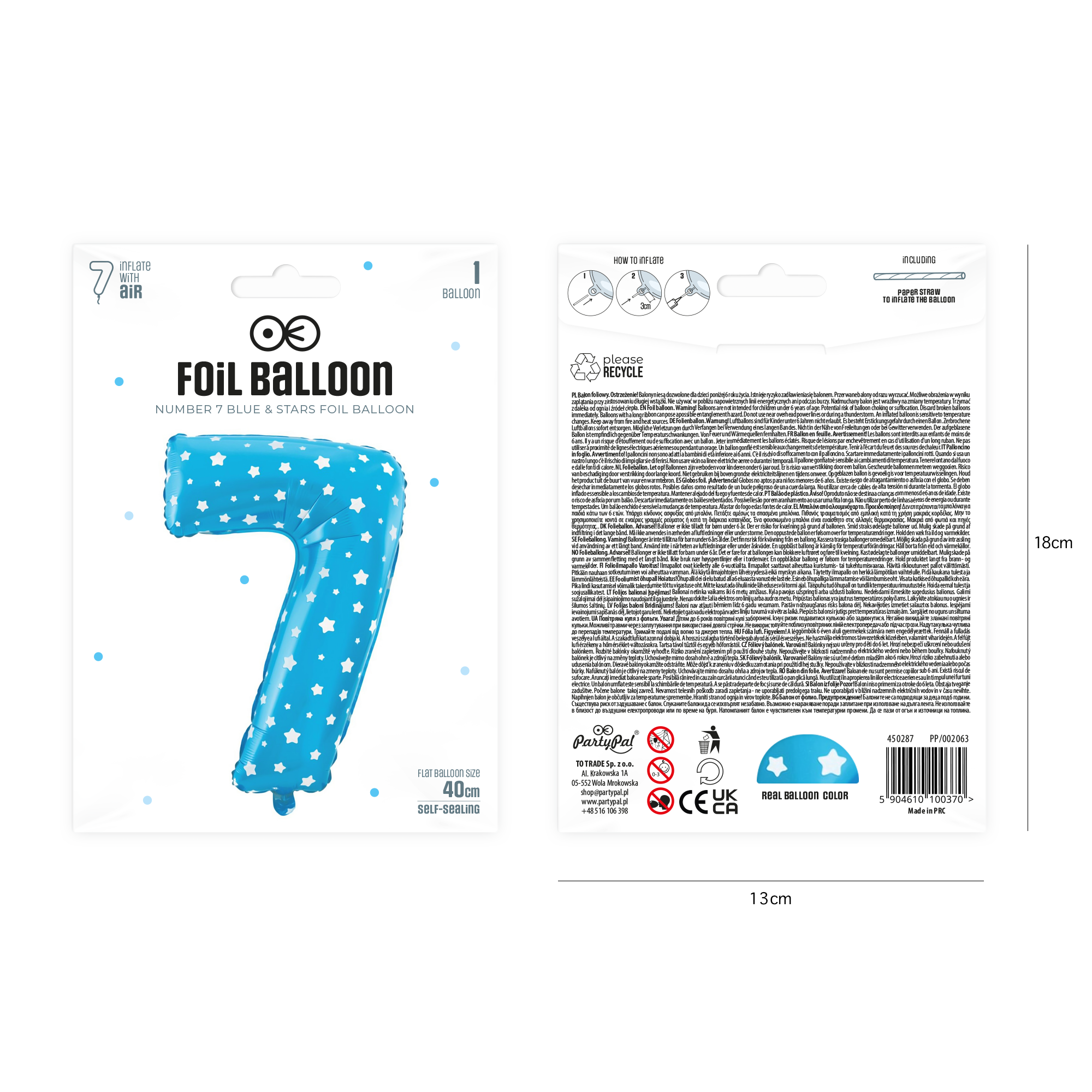Balon foliowy Gwiazdki cyfra 7 niebieski 40cm