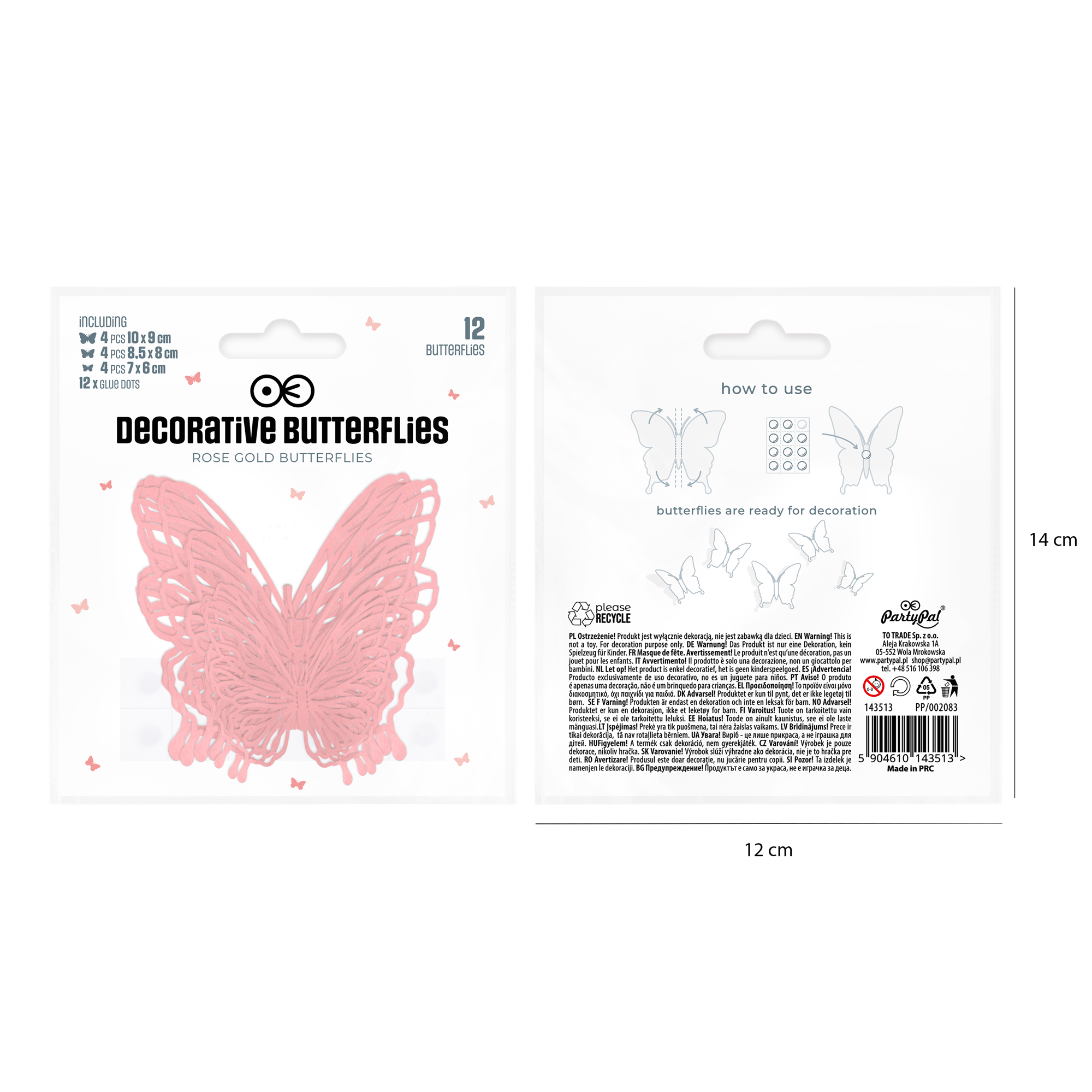 Naklejki na ścianę 3D Motyle ażurowe rose gold 12szt.