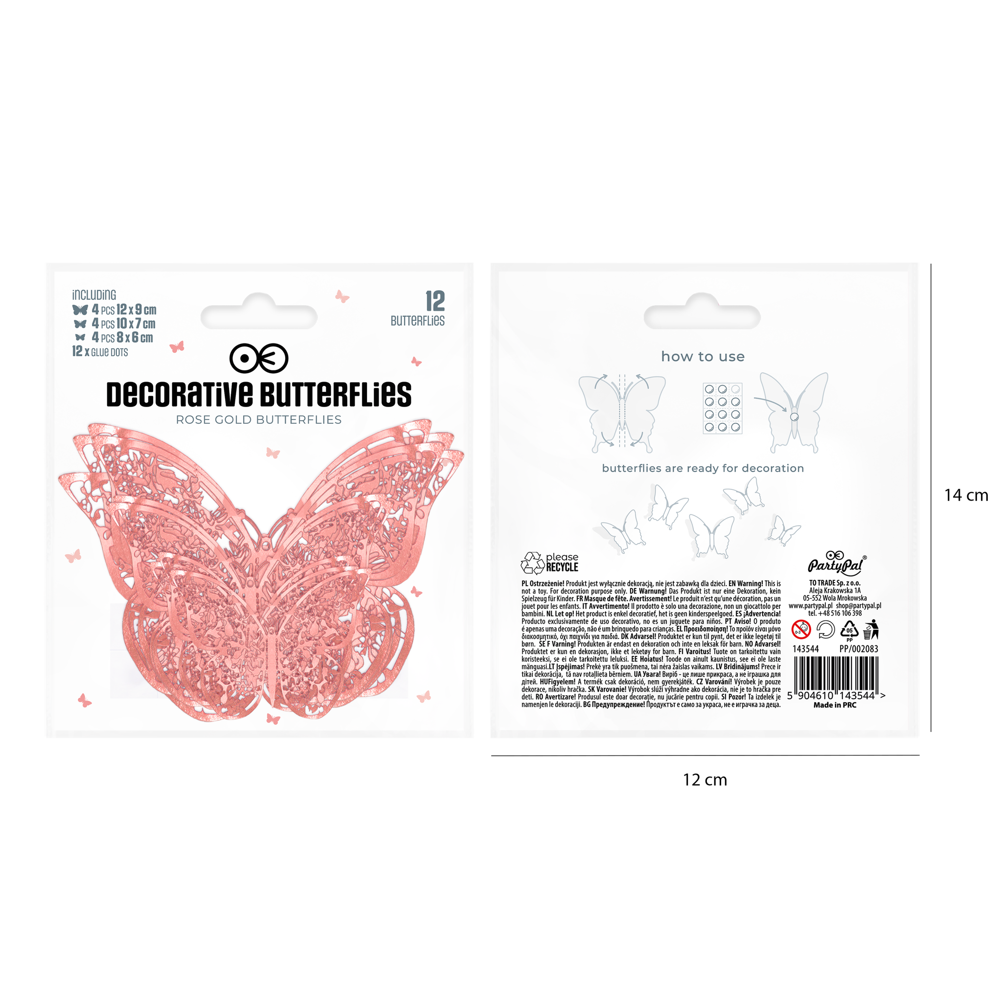 Naklejki na ścianę 3D Motyle koronkowe rose gold 12szt.