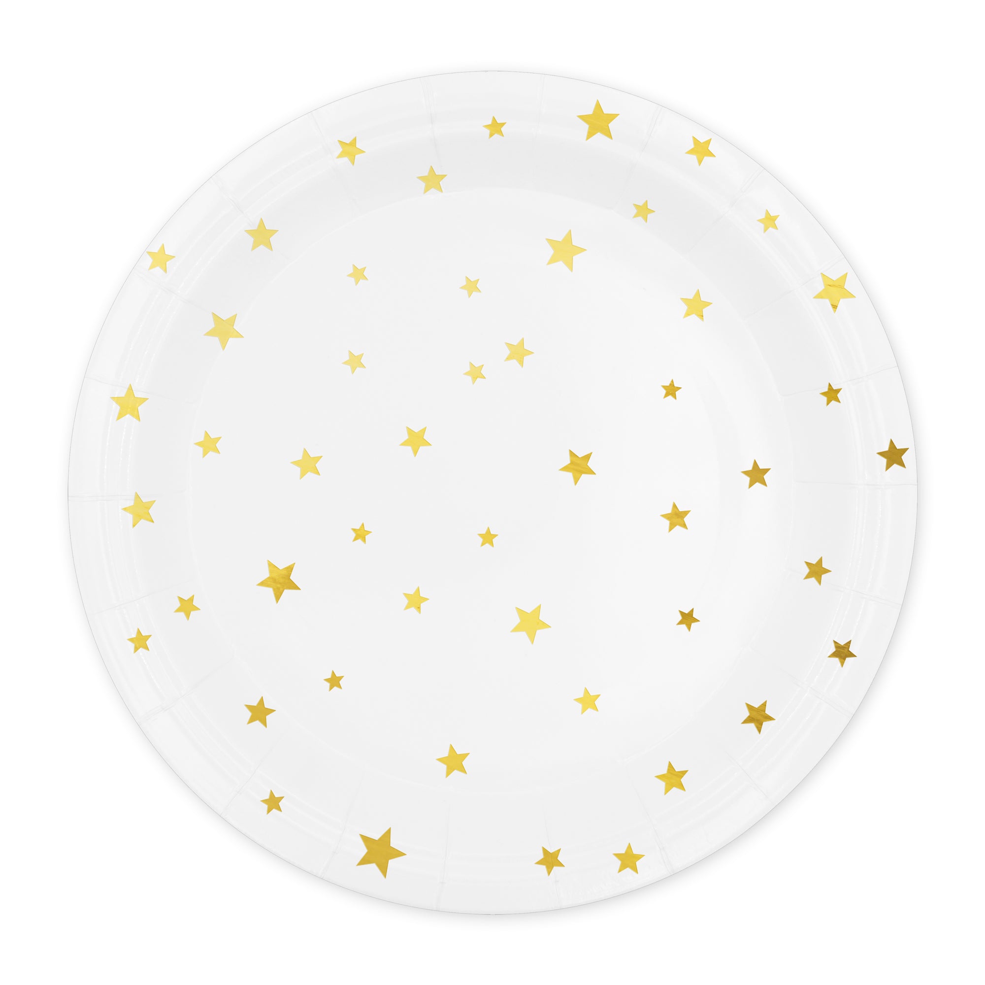 Talerzyk papierowy biały w złote gwiazdki 7cali 6szt.
