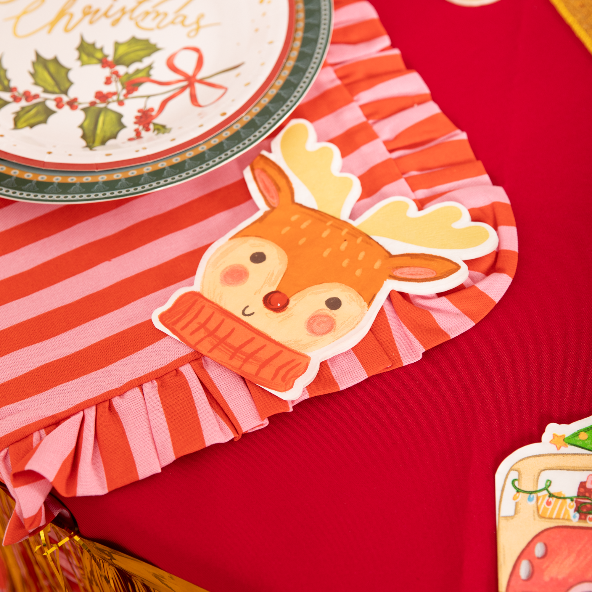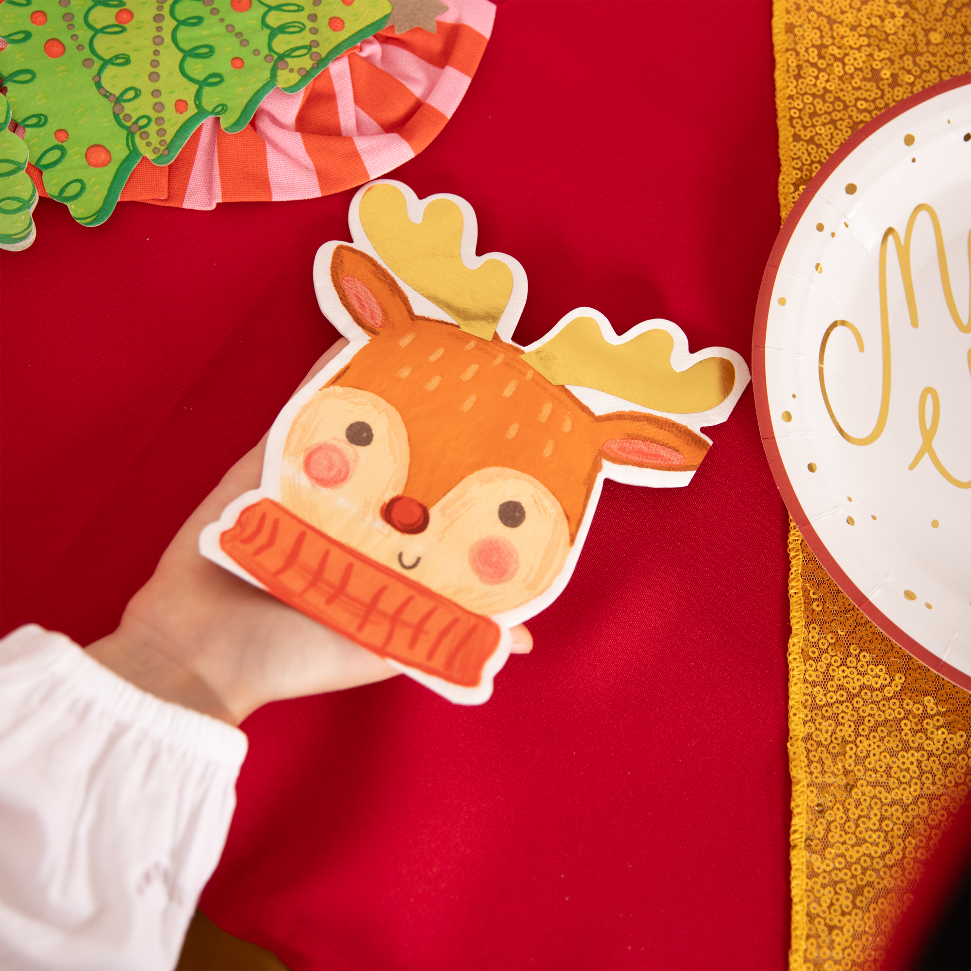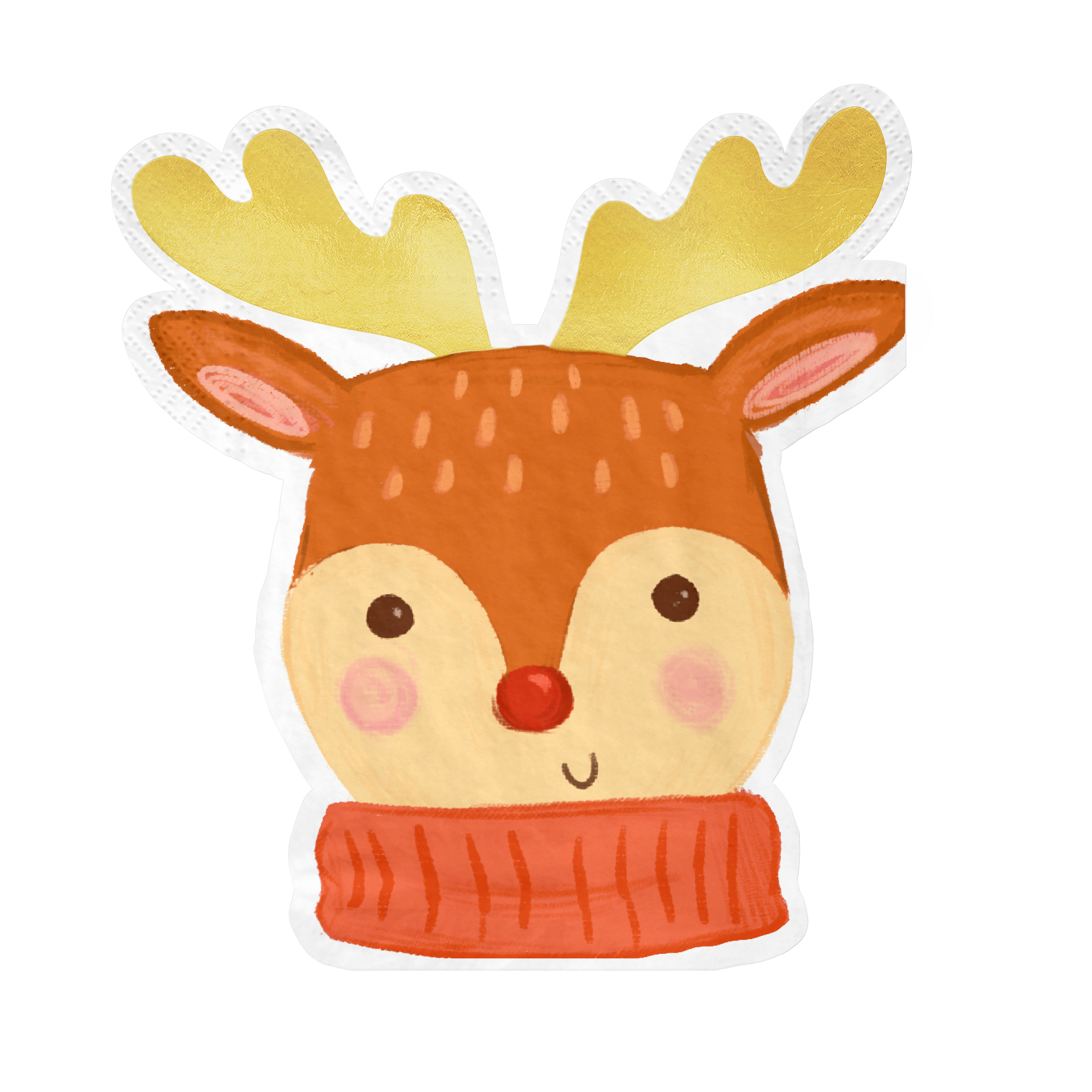 Świąteczne serwetki papierowe w kszt.ałcie renifera. Serwetki nawiązują do tematyki bożonarodzeniowej, będą zatem interesującym akcentem na świątecznym stole, podkreślając jego okolicznościowy charakter.