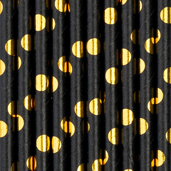 Słomki papierowe w kolorze czarnym ze złotymi kropkami będą ozdobą wielu imprezowych stołów w sylwestra, w karnawale, czy przyjęciach urodzinowych. Pasują do wielu talerzyków i kubeczków oferowanych przez naszą hurtownię.