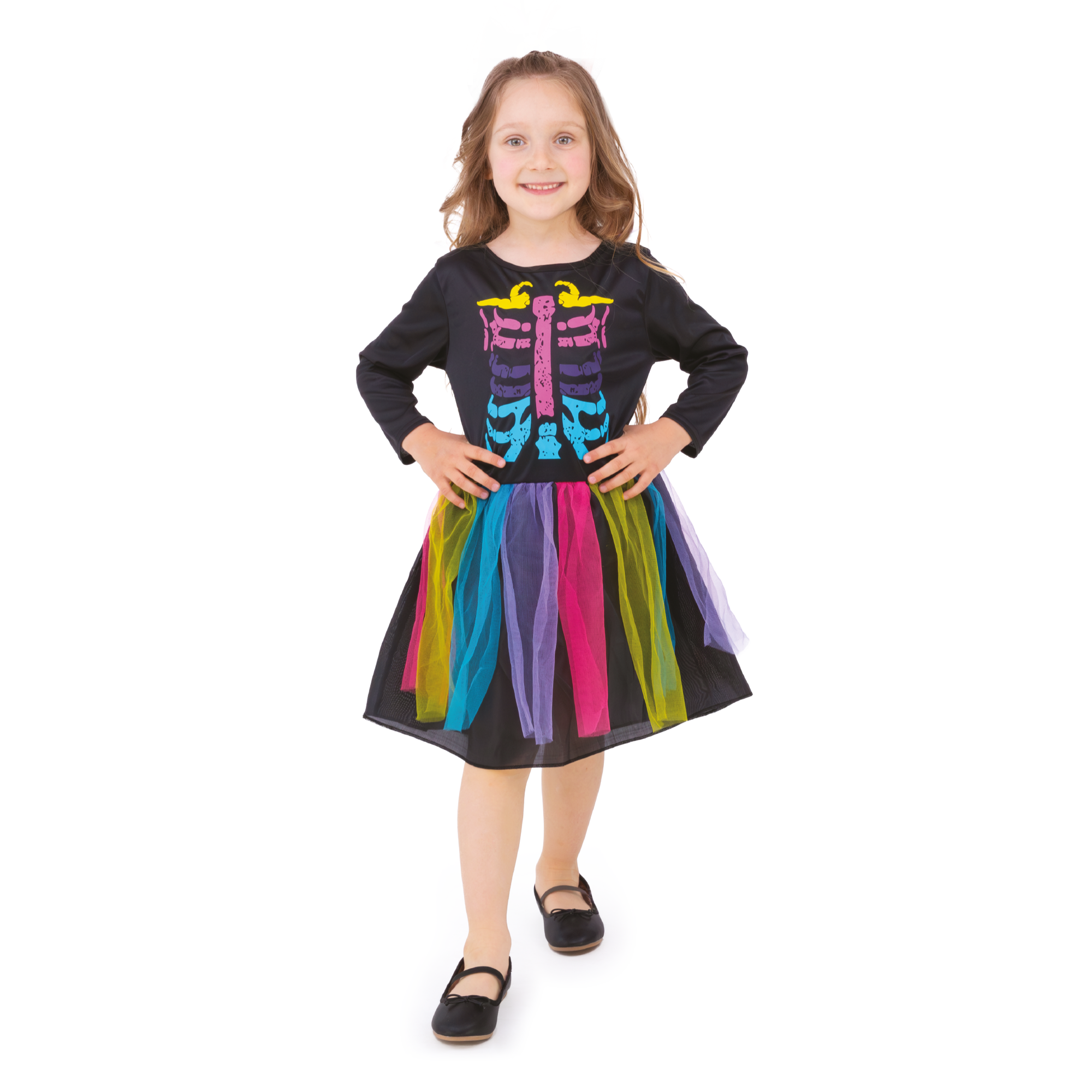 Sukienka dla dziewczynki Halloween Kolorowy Kościotrup rozmiar M - OUTLET