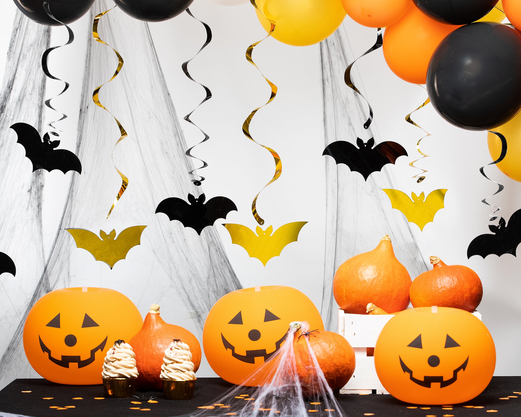 Efektowna dekoracja z nietoperzami na Halloween. Świderki występują w dwóch kolorach, czarnym i złotym.
