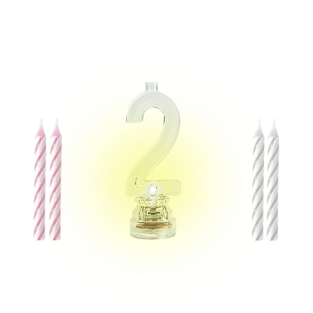 • W komplecie: świeca ledowa, 2 szt. świeczki różowej, 2 szt. świeczki białej