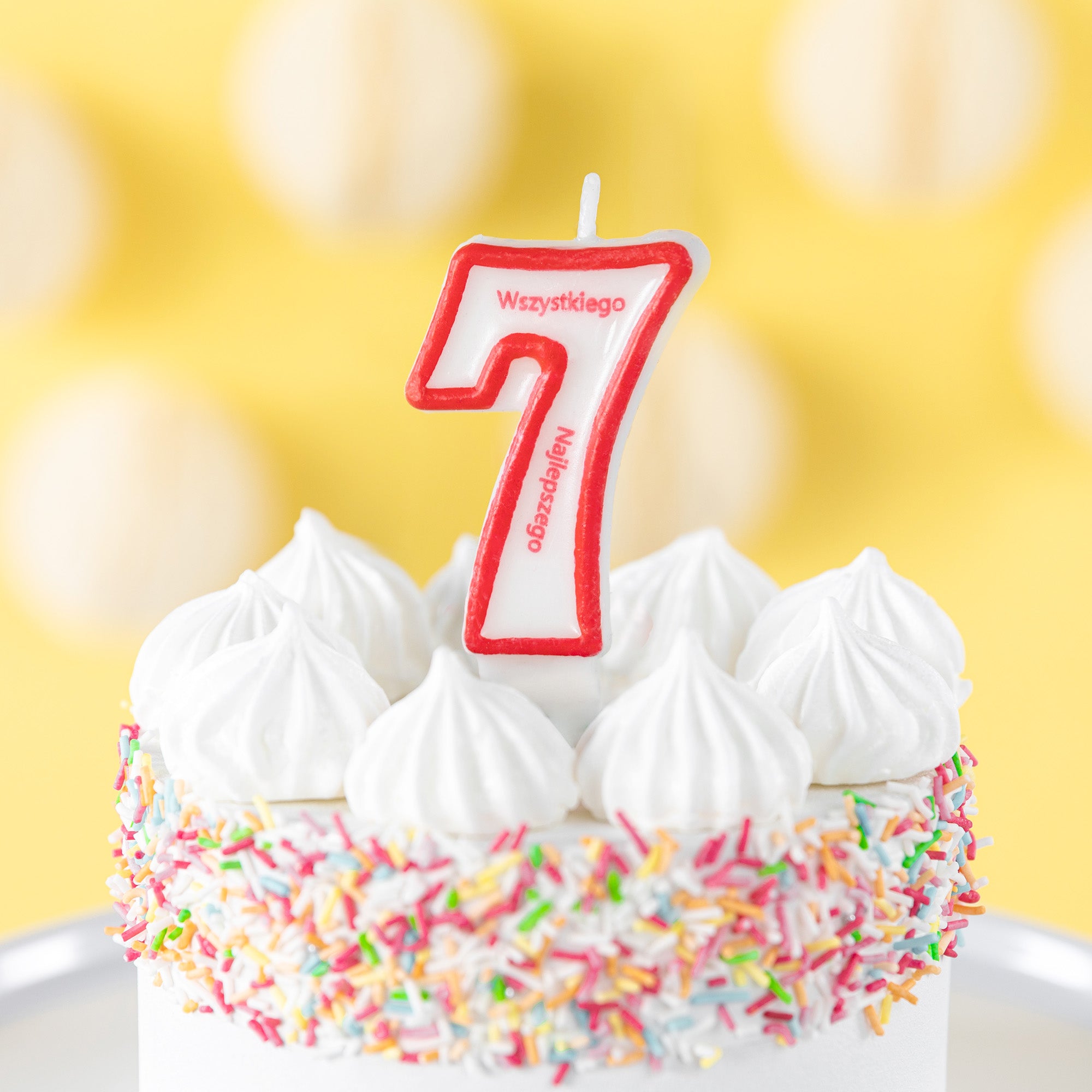 Świeczka cyfra z napisem Wszystkiego najlepszego 7