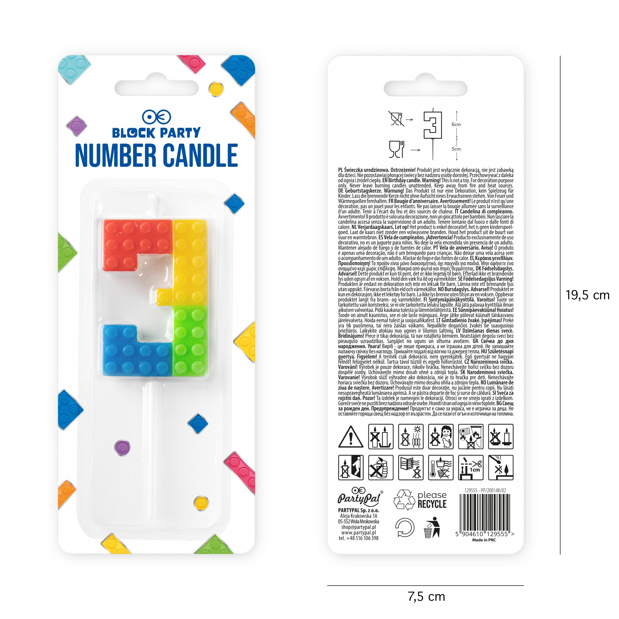 Świeczka na tort Klocki cyfra 3- przód i tył opakowania