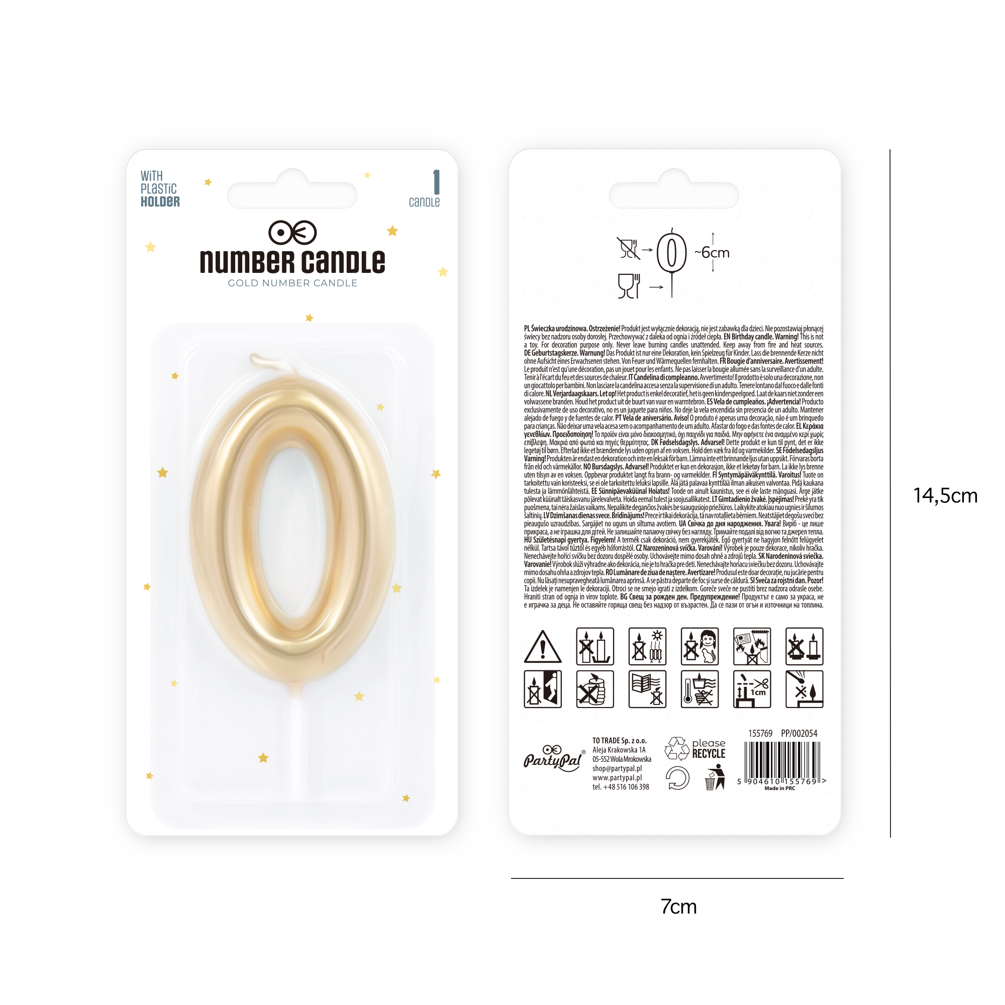Świeczka złota połysk cyfra 0