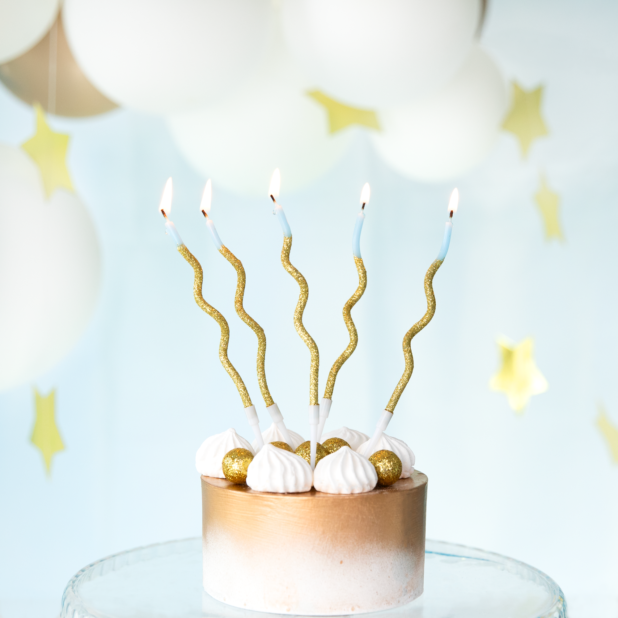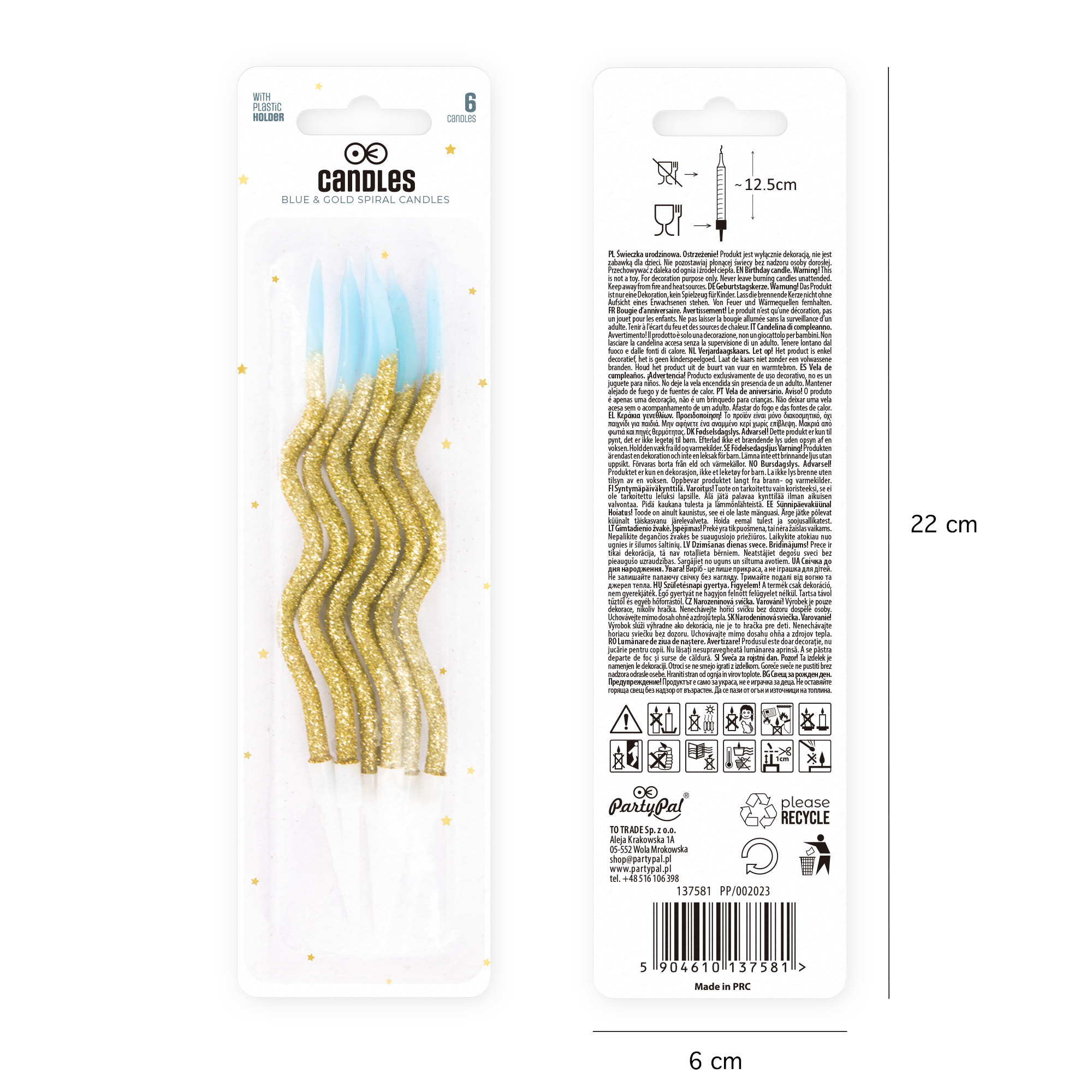 Świeczki urodzinowe spiralne złoto-niebieskie 6szt.