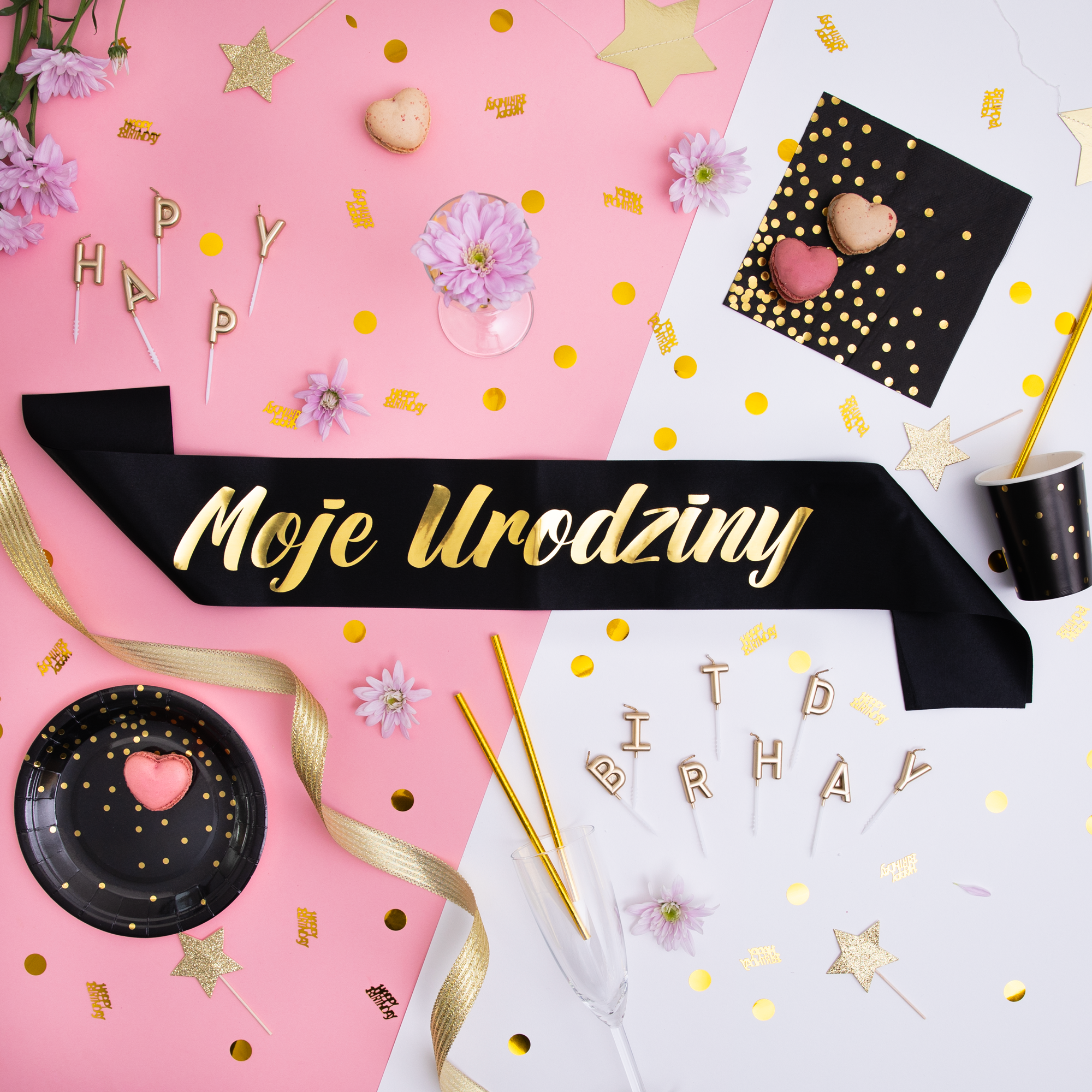 Szarfa urodzinowa Moje Urodziny czarno-złota 10x160cm