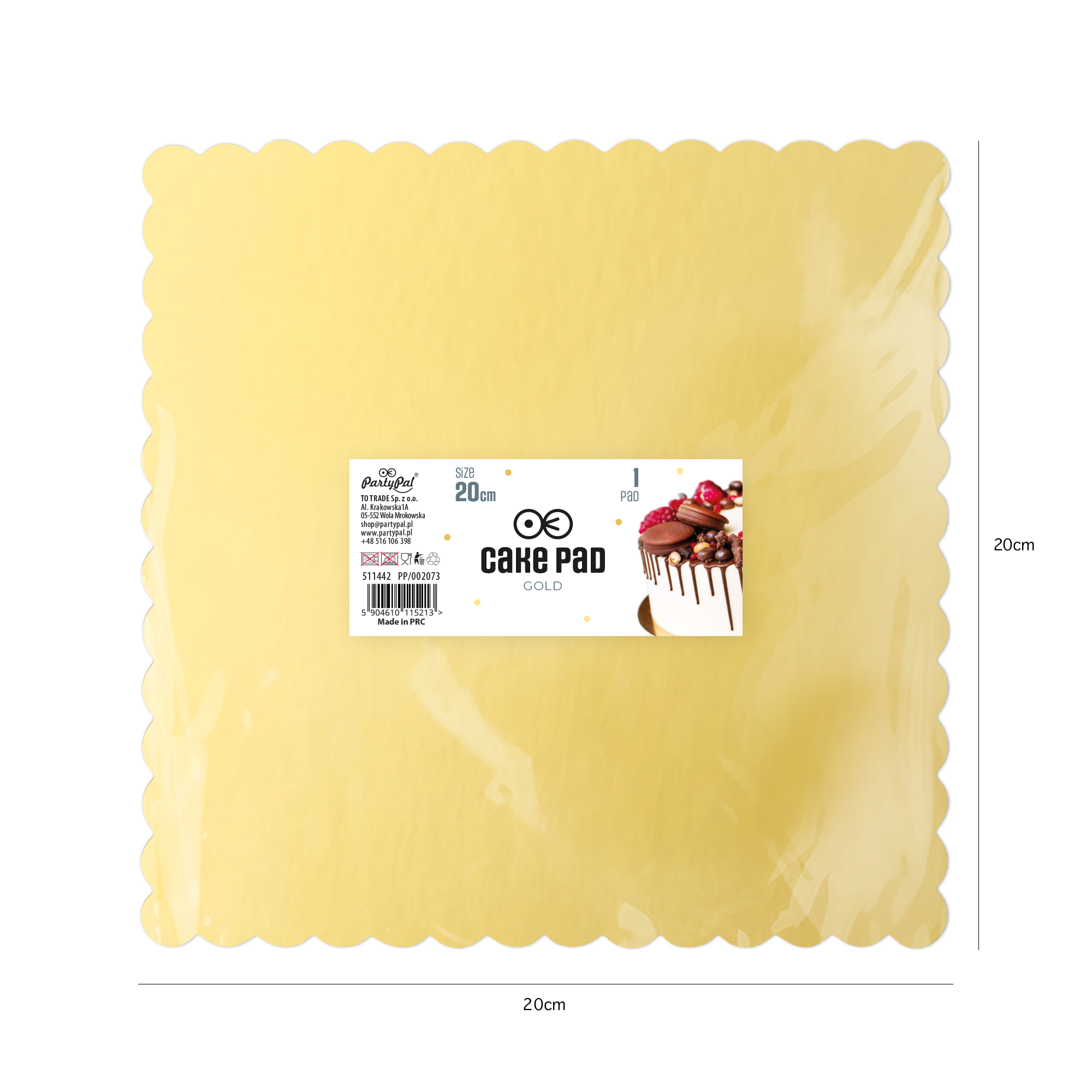 Tacka na ciasto kwadratowa złota 20cm 1szt.