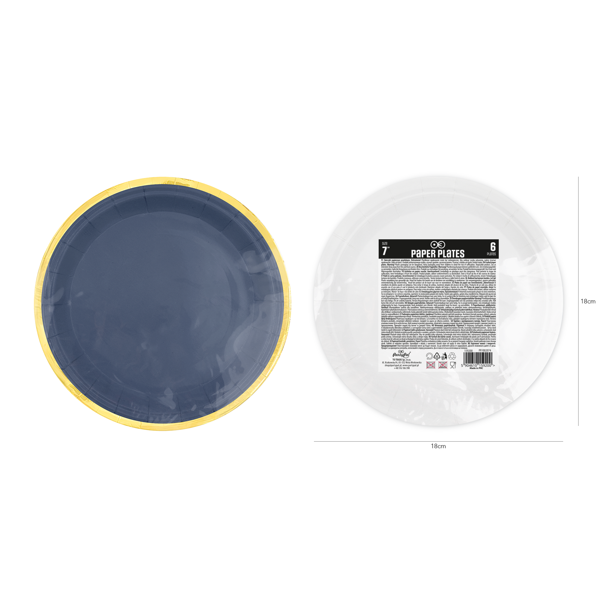 Talerzyk papierowy granatowy Classic Gold 7cali 6szt.