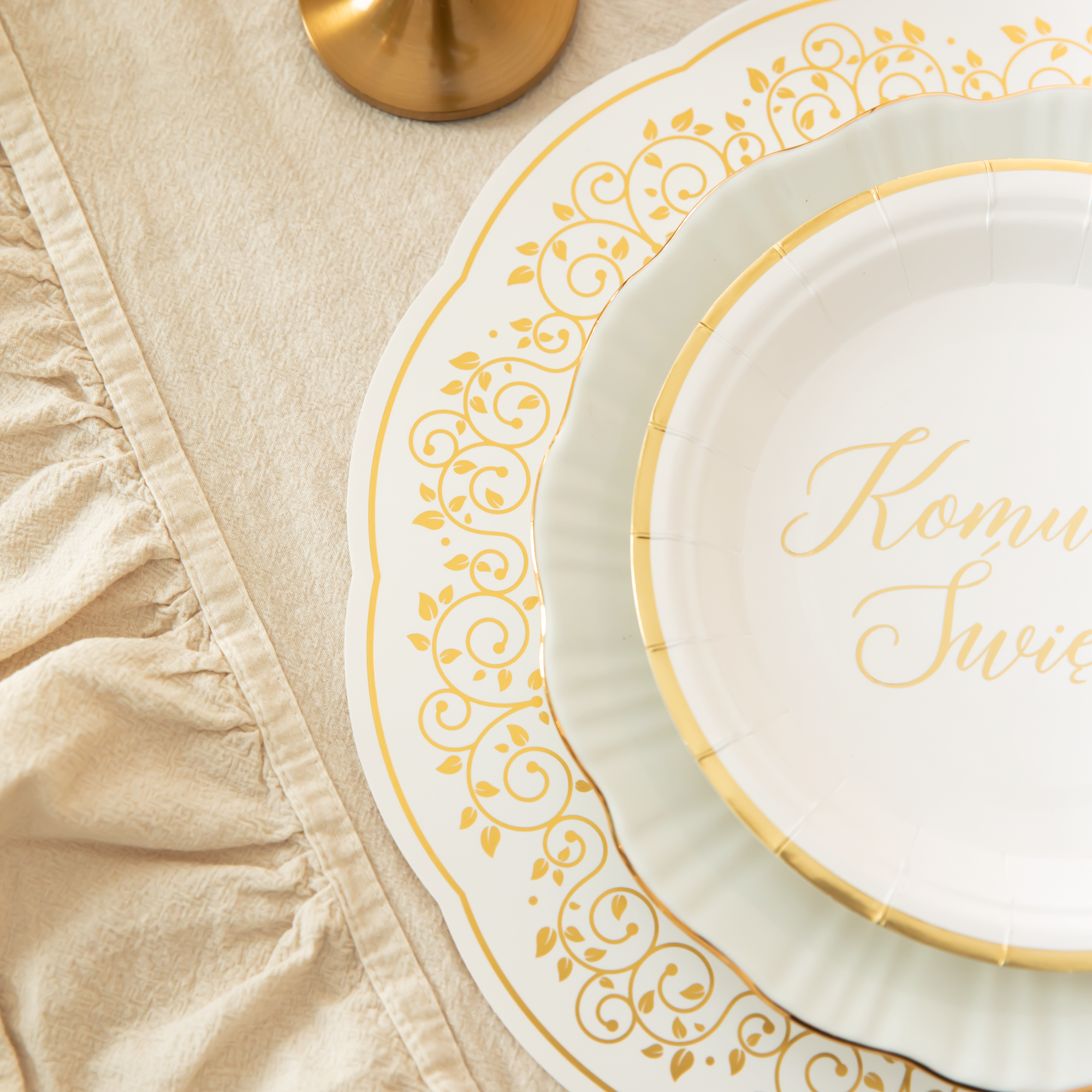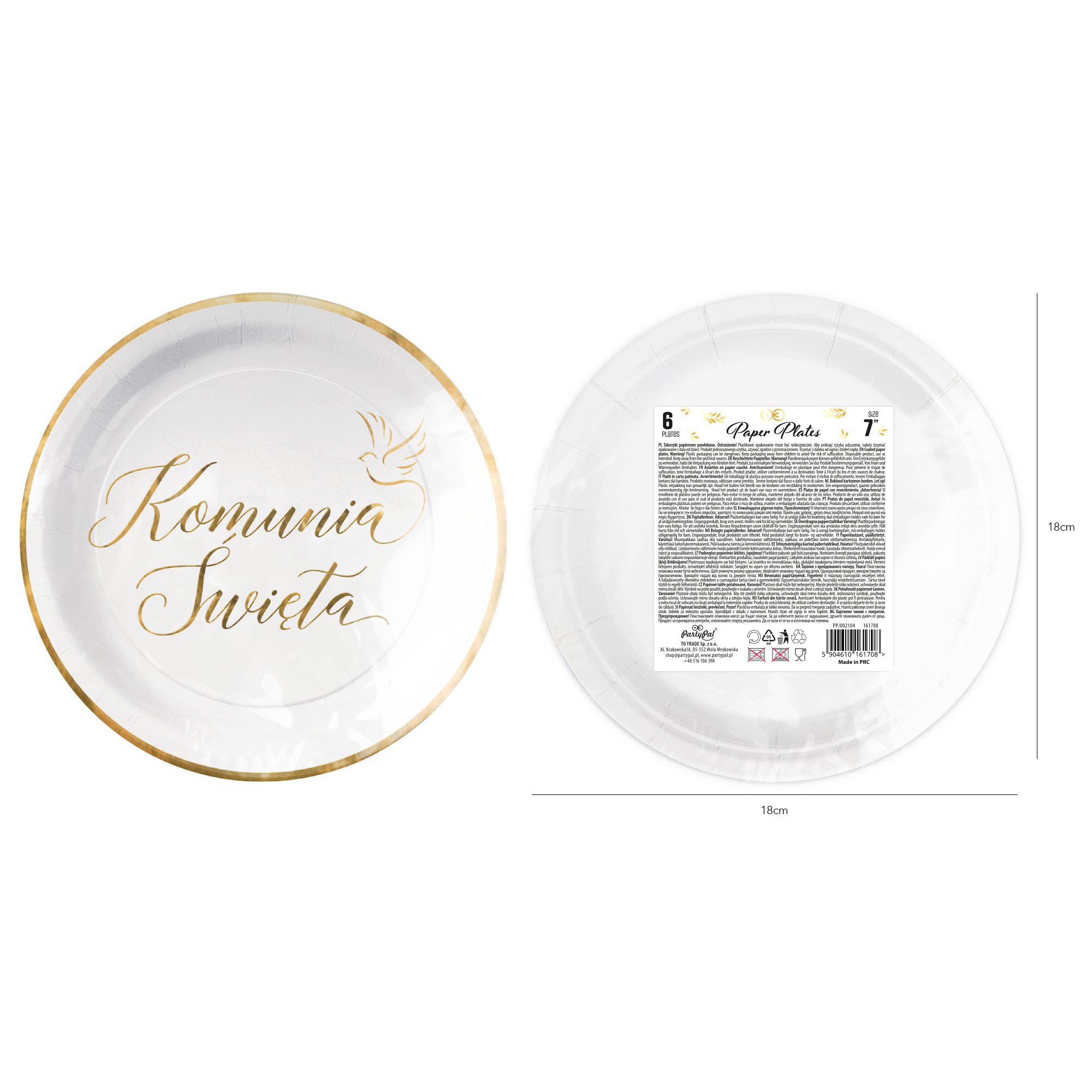 Talerzyki papierowe Komunia Święta biało-złote 7 cali 6 szt.