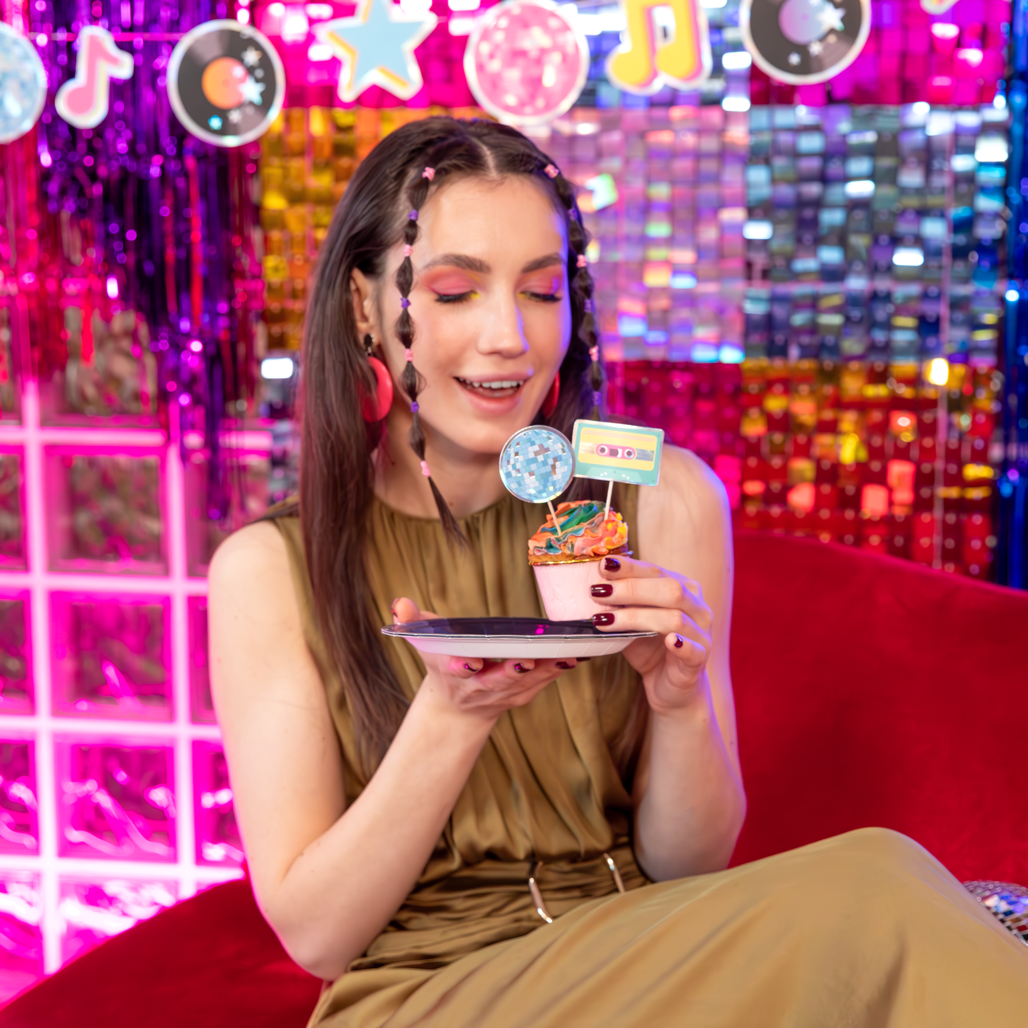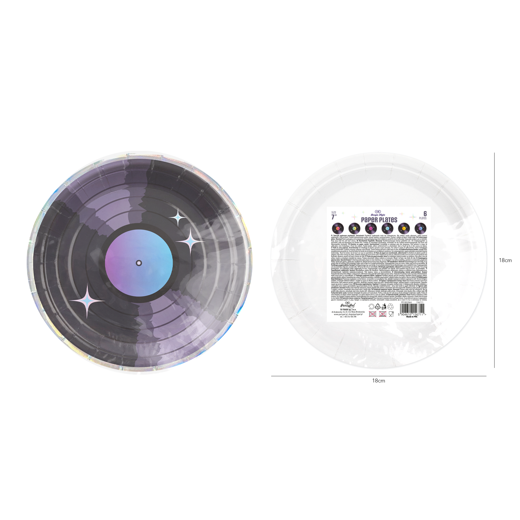 Talerzyki papierowe Retro Disco 7cali 6szt. zestaw