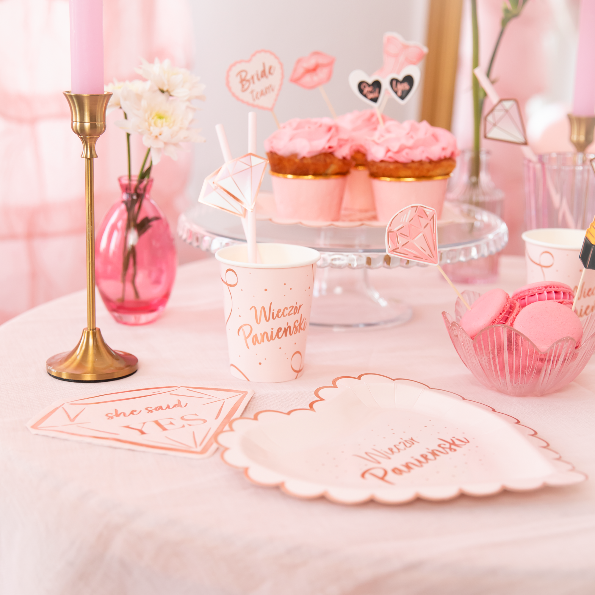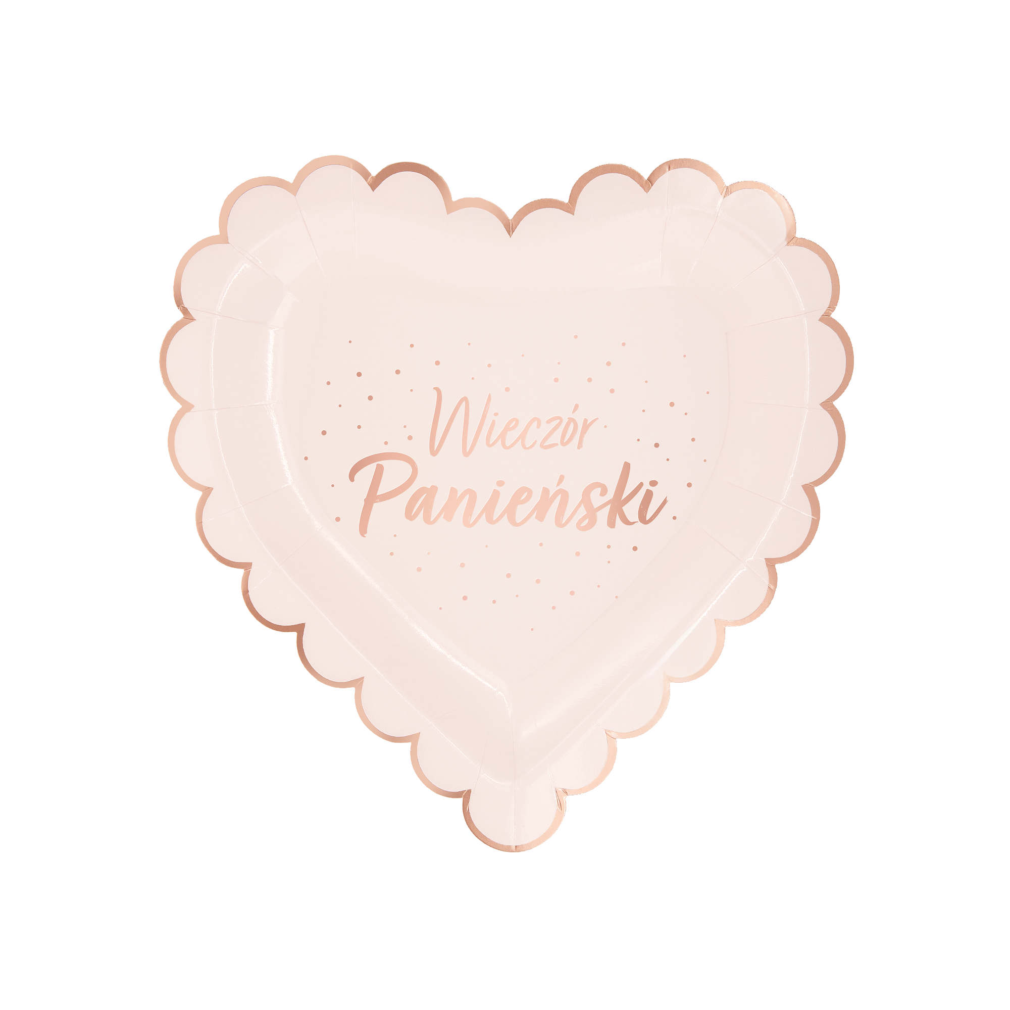 Talerzyki papierowe Wieczór Panieński Serce różowe 9 cali 6 szt.