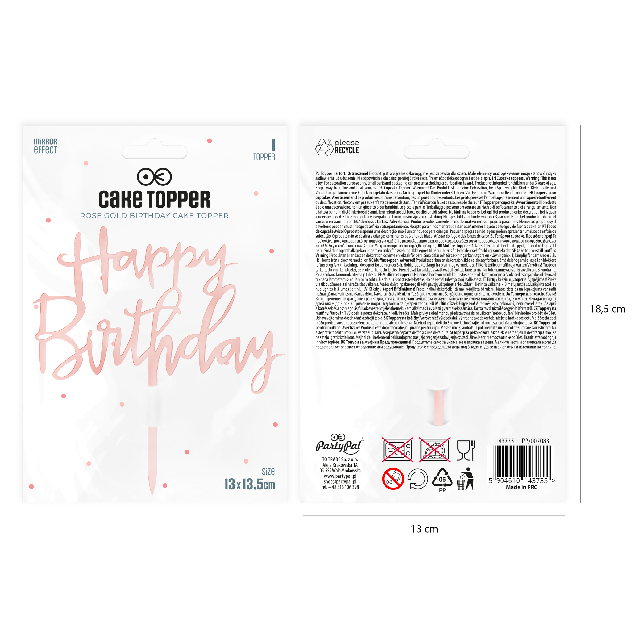 Topper na tort Happy Birthday lustrzany rose gold 1szt.