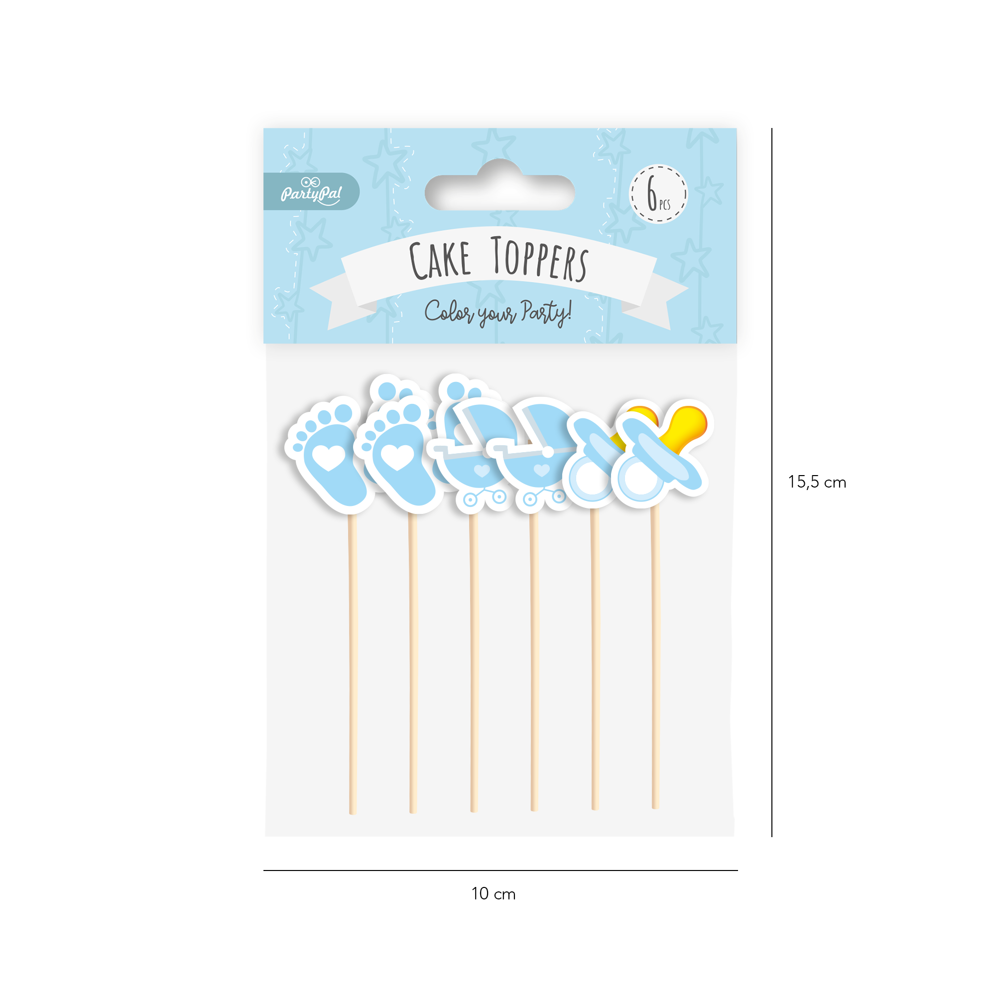 Toppery na tort Baby Shower niebieskie 6szt.
