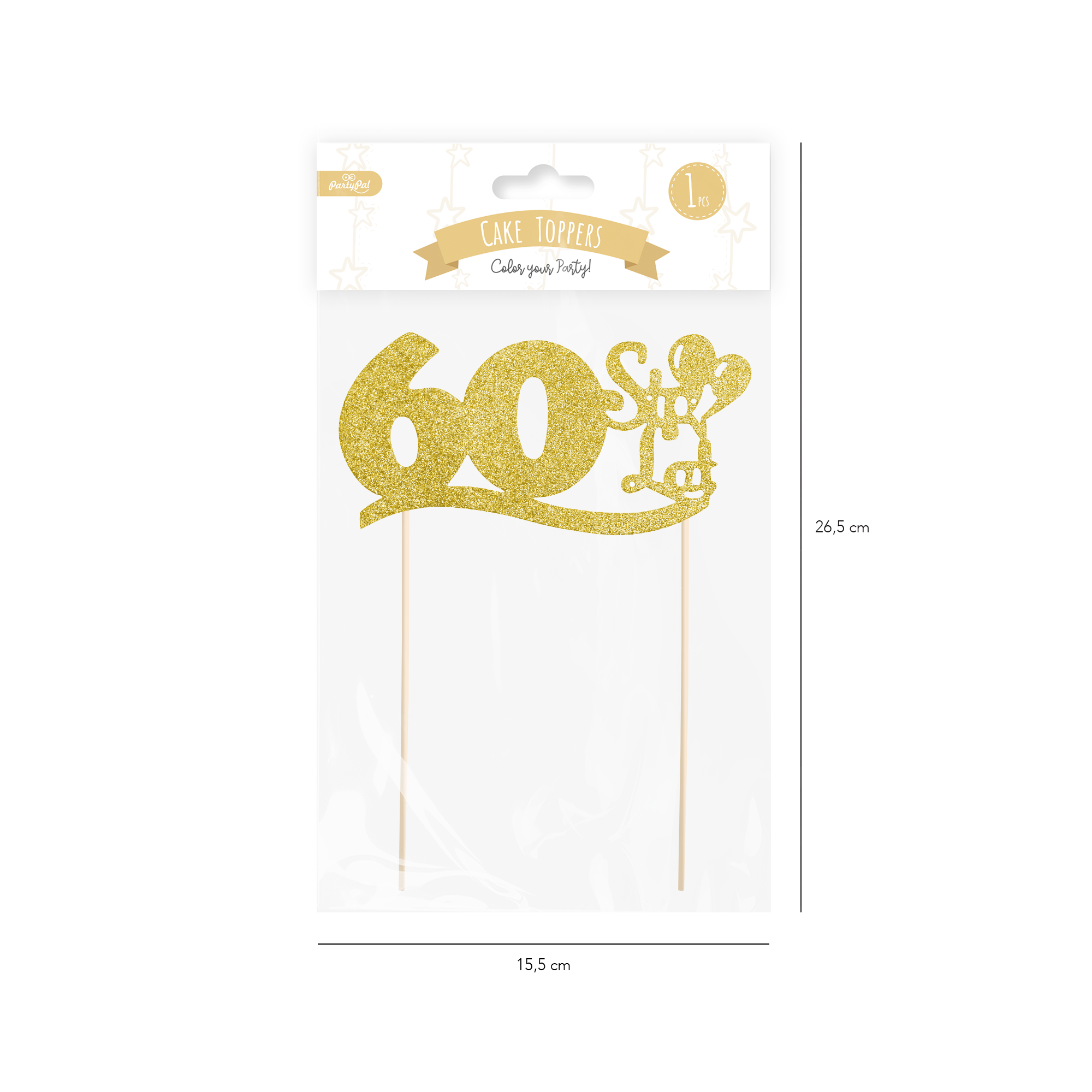 Golden 60th birthday cake toppers
