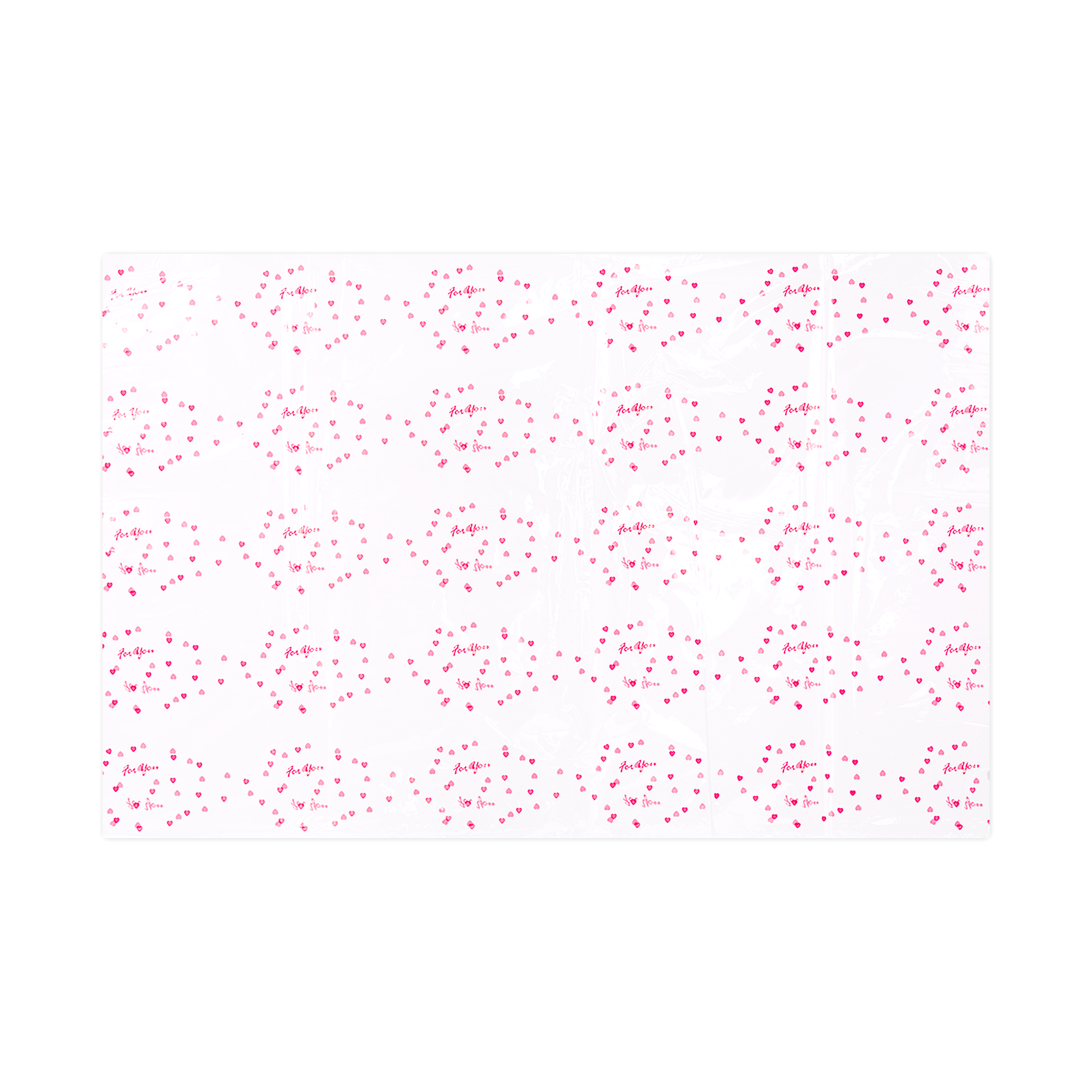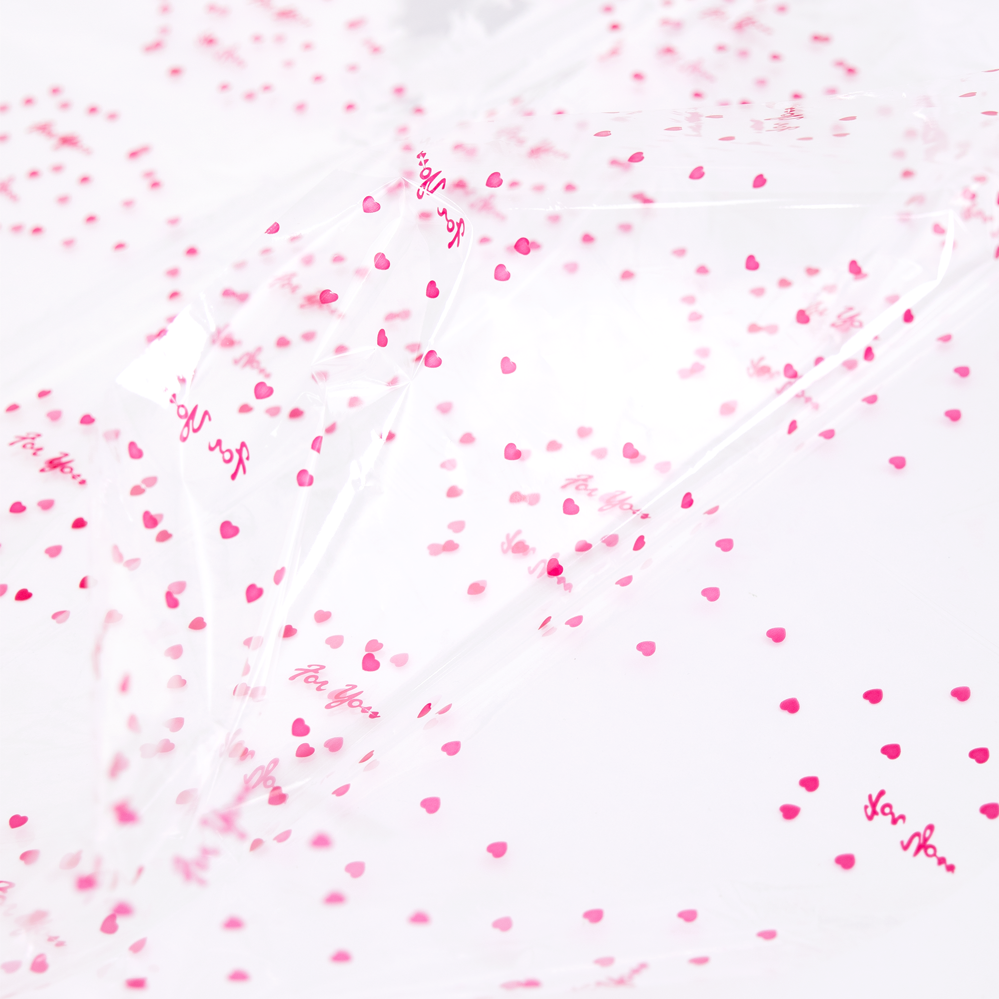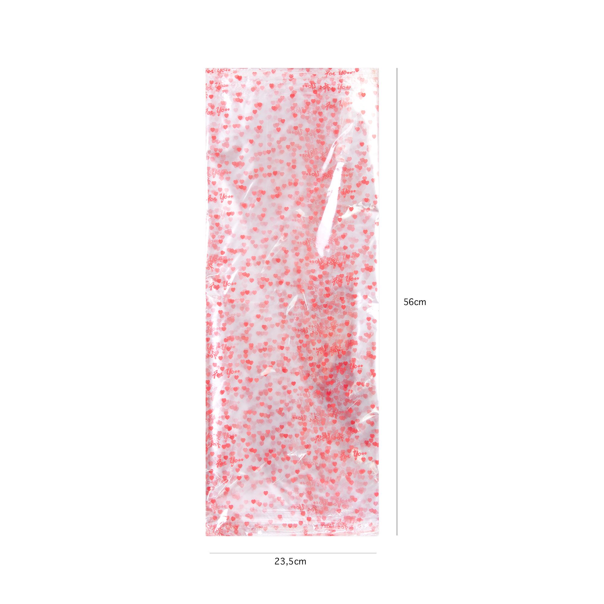 Torebki foliowe przezroczyste z ozdobnym nadrukiem w drobne serduszka oraz napisy For You w kolorze czerwonym. Idealne do zapakowania prezentów, koszy upominkowych, paczek okolicznościowych.