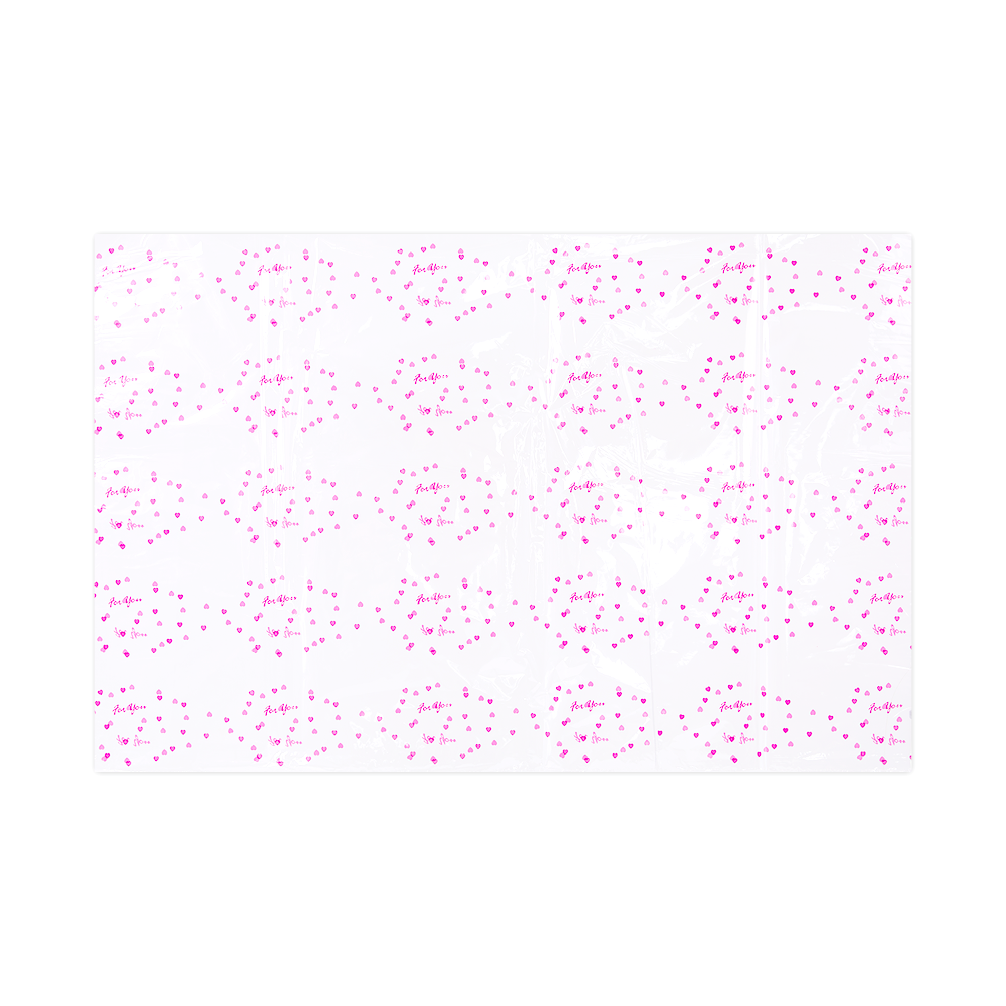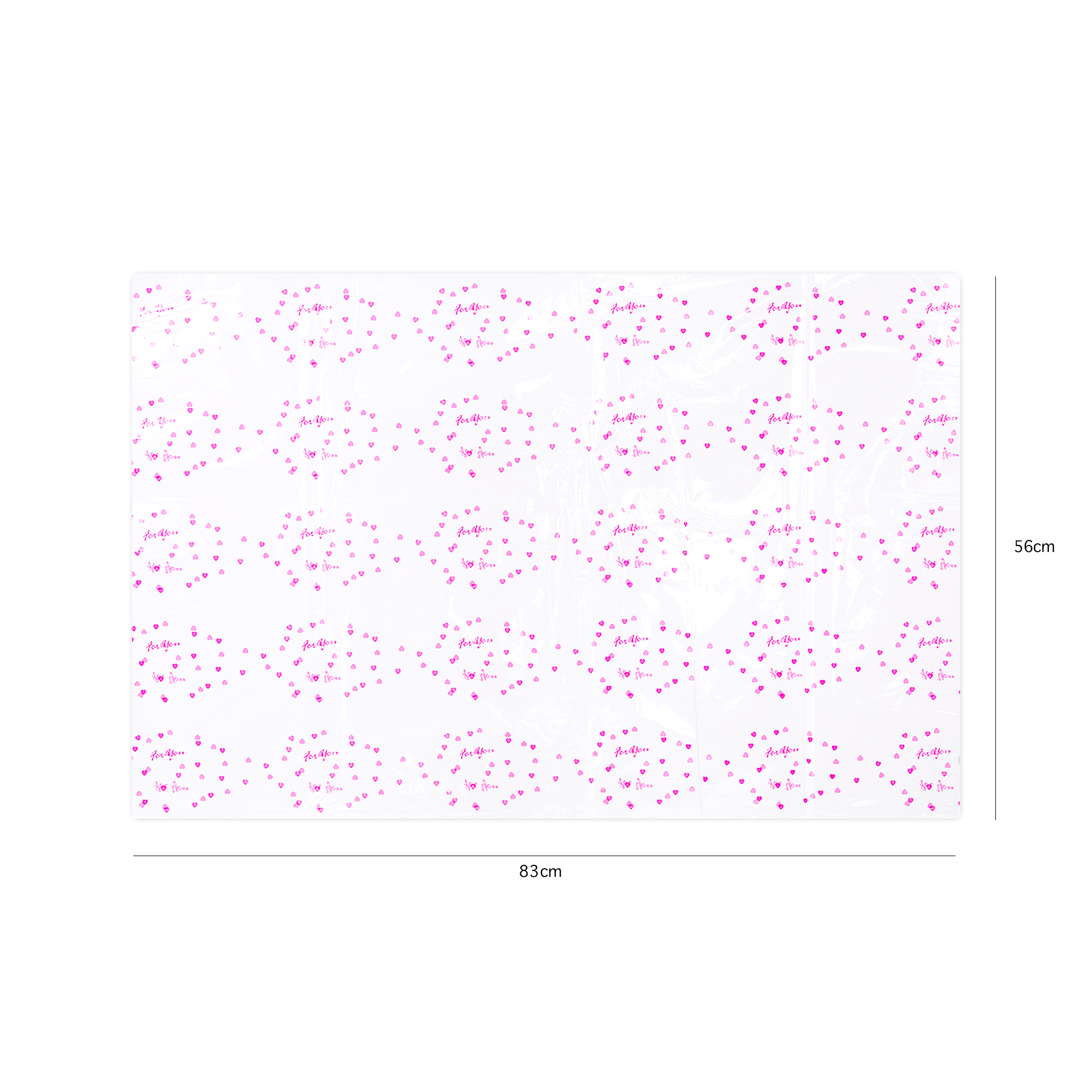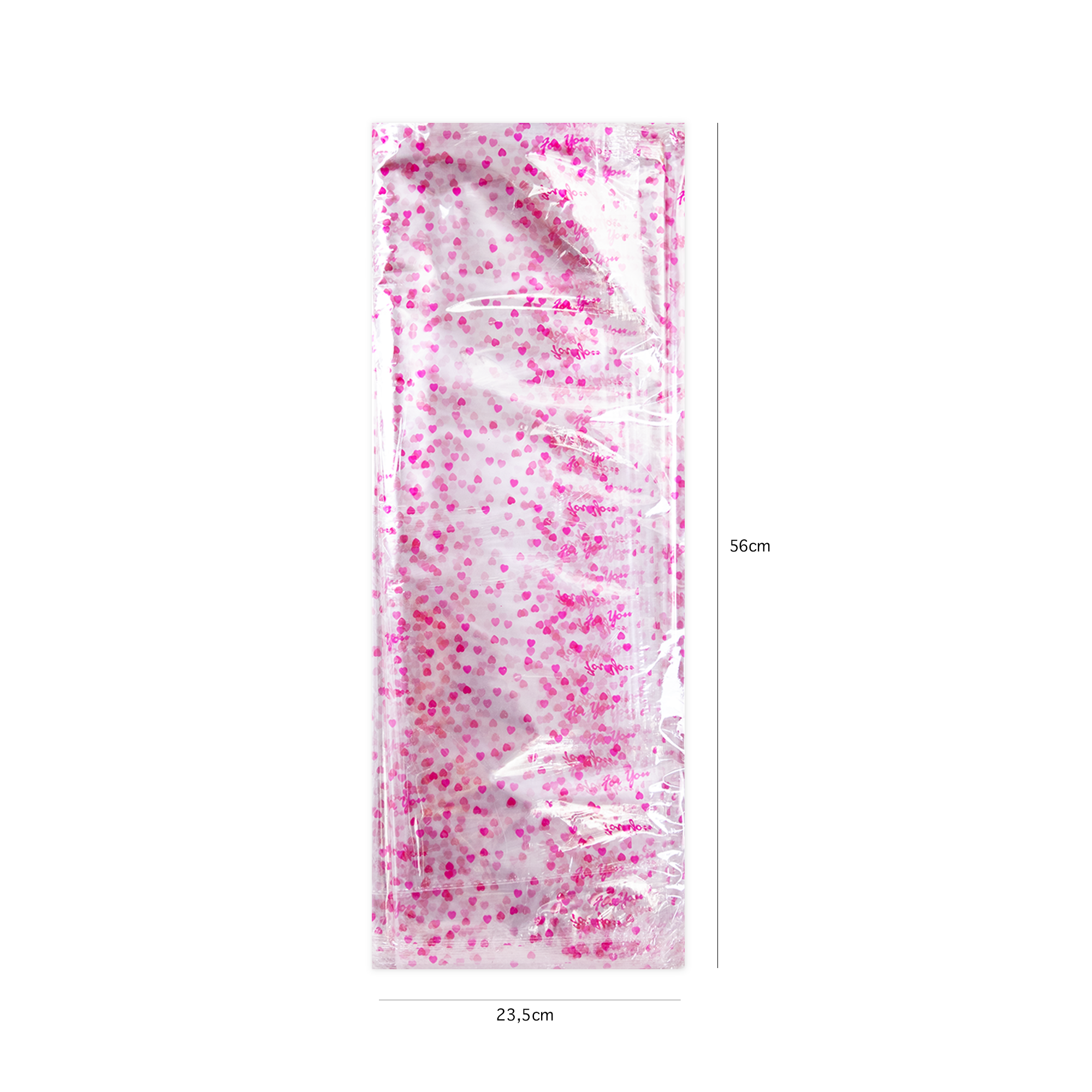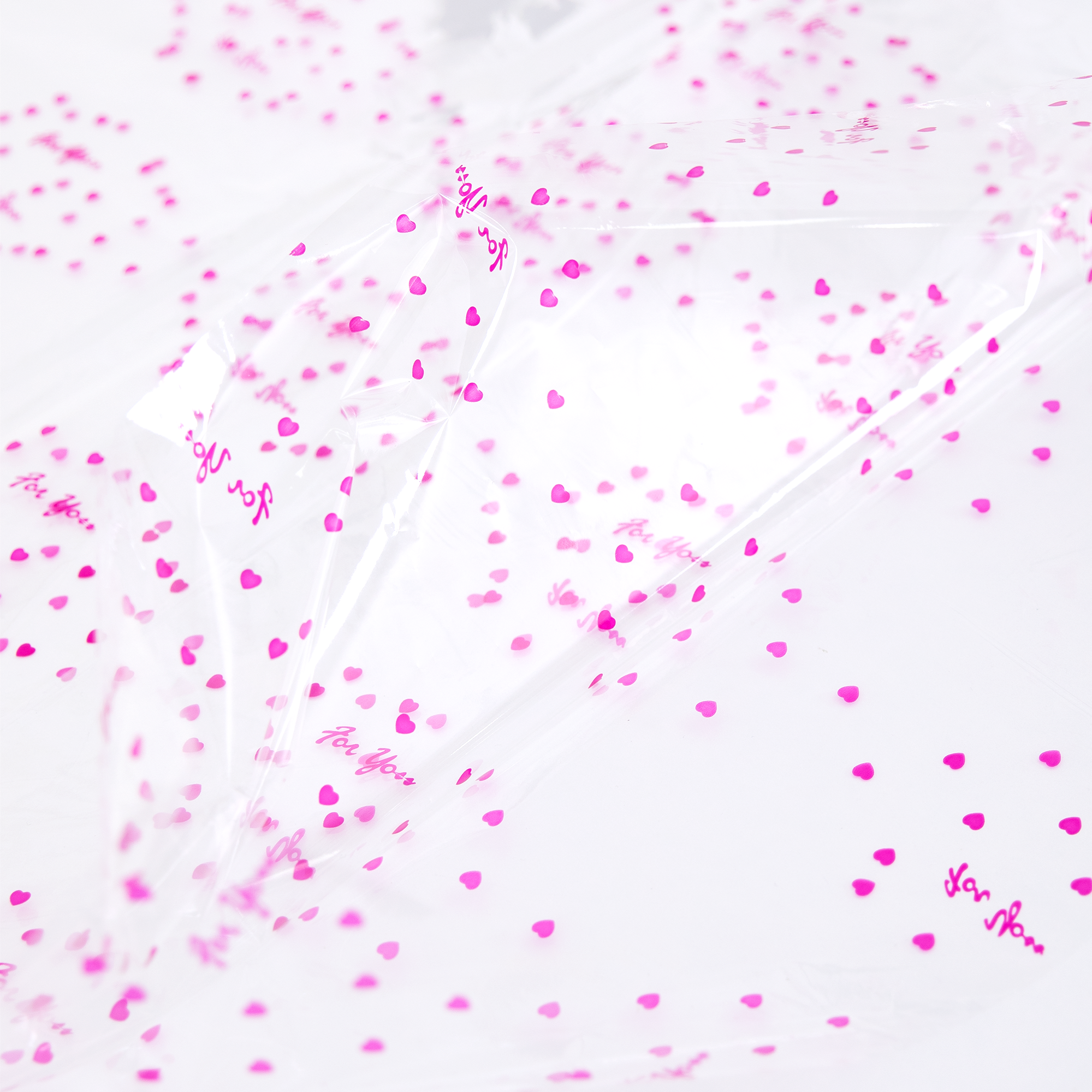 Torebki foliowe przezroczyste z ozdobnym nadrukiem w drobne serduszka oraz napisy For You w kolorze różowym. Idealne do zapakowania prezentów, koszy upominkowych, paczek okolicznościowych.