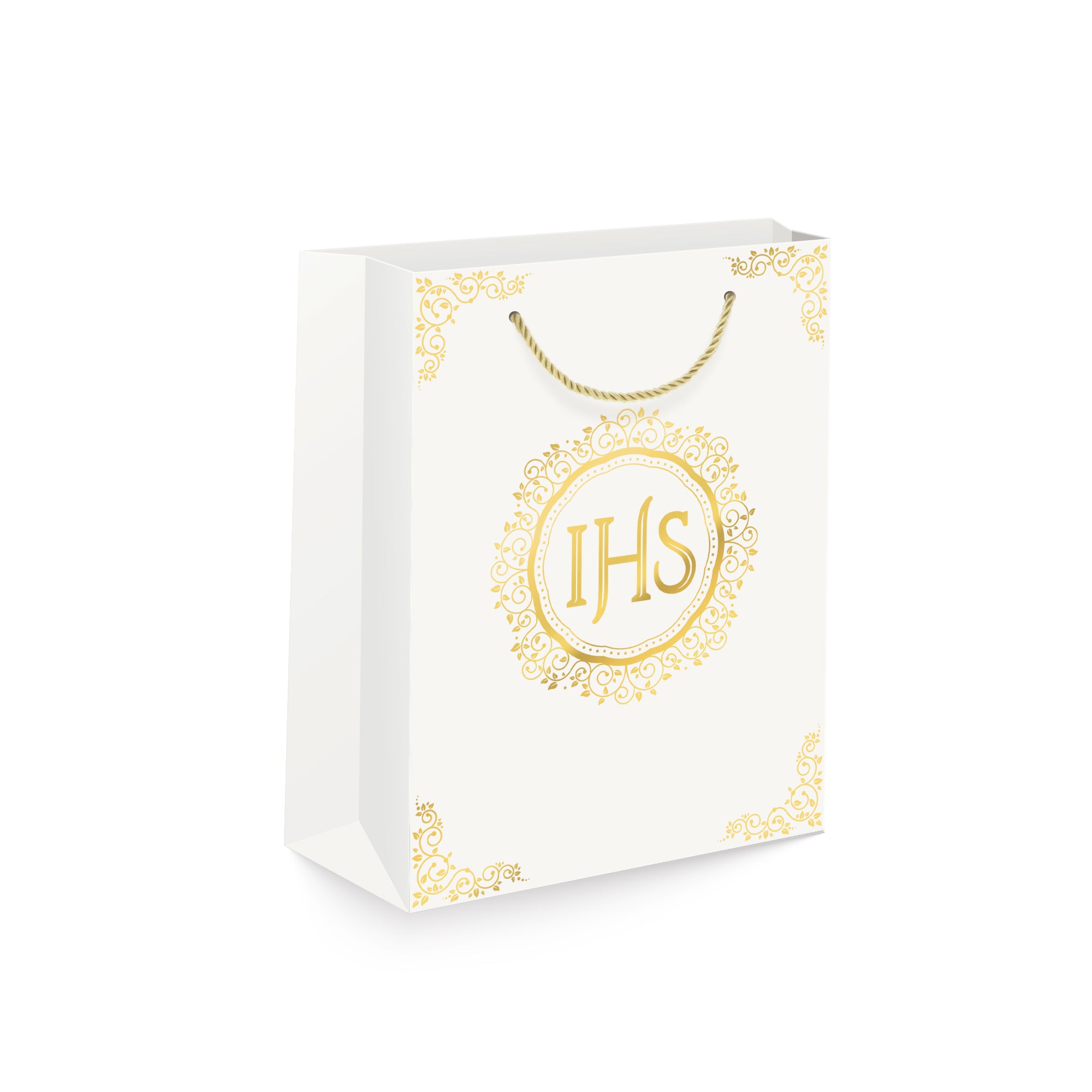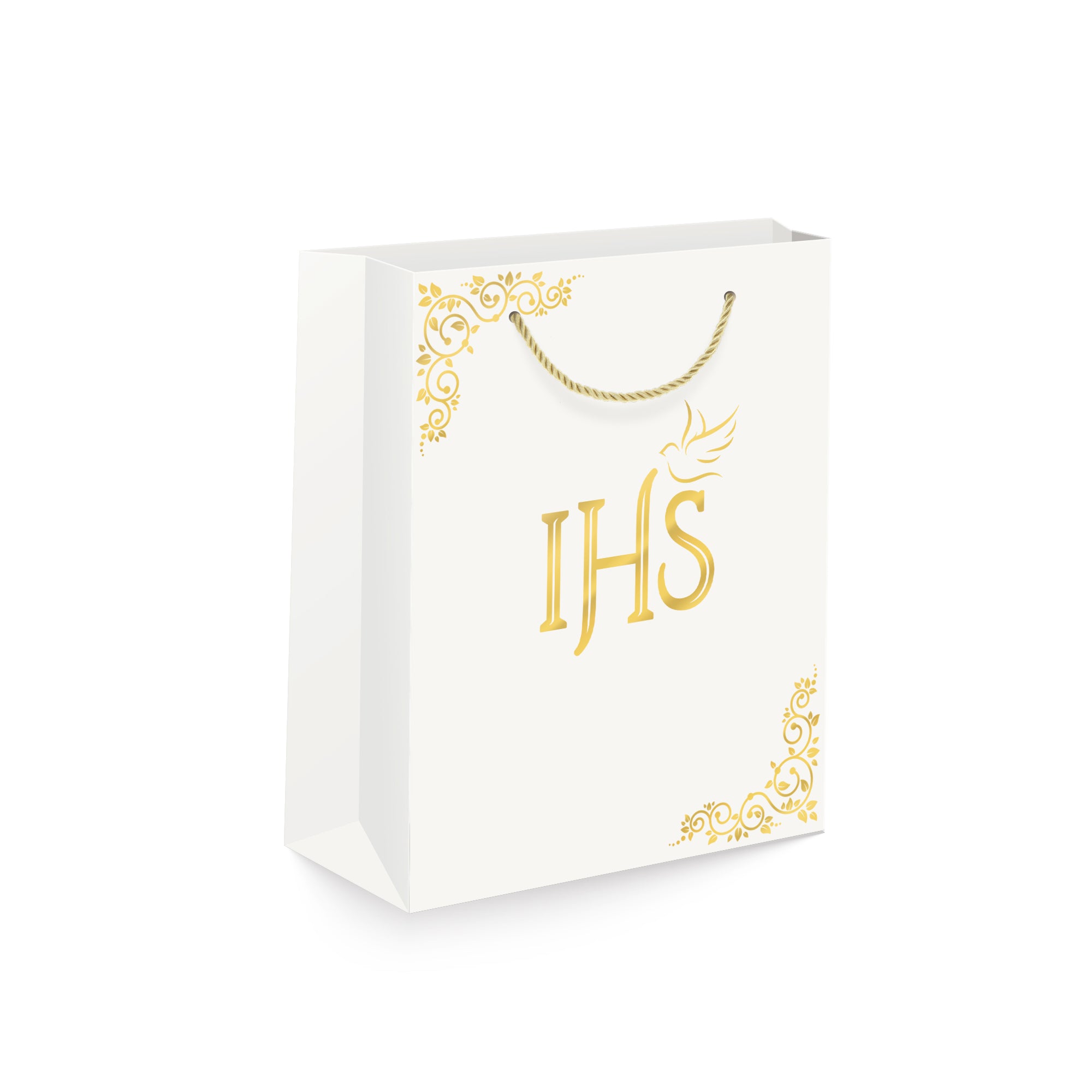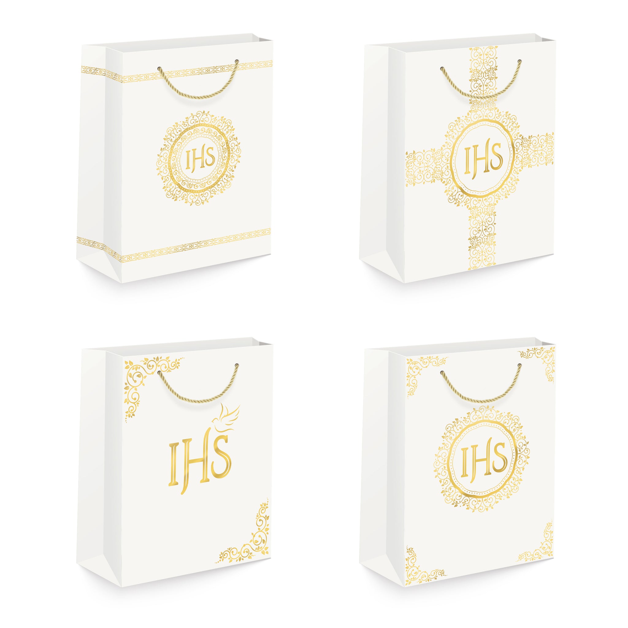 Torebki na prezenty IHS biało-złote duże 12szt. mix