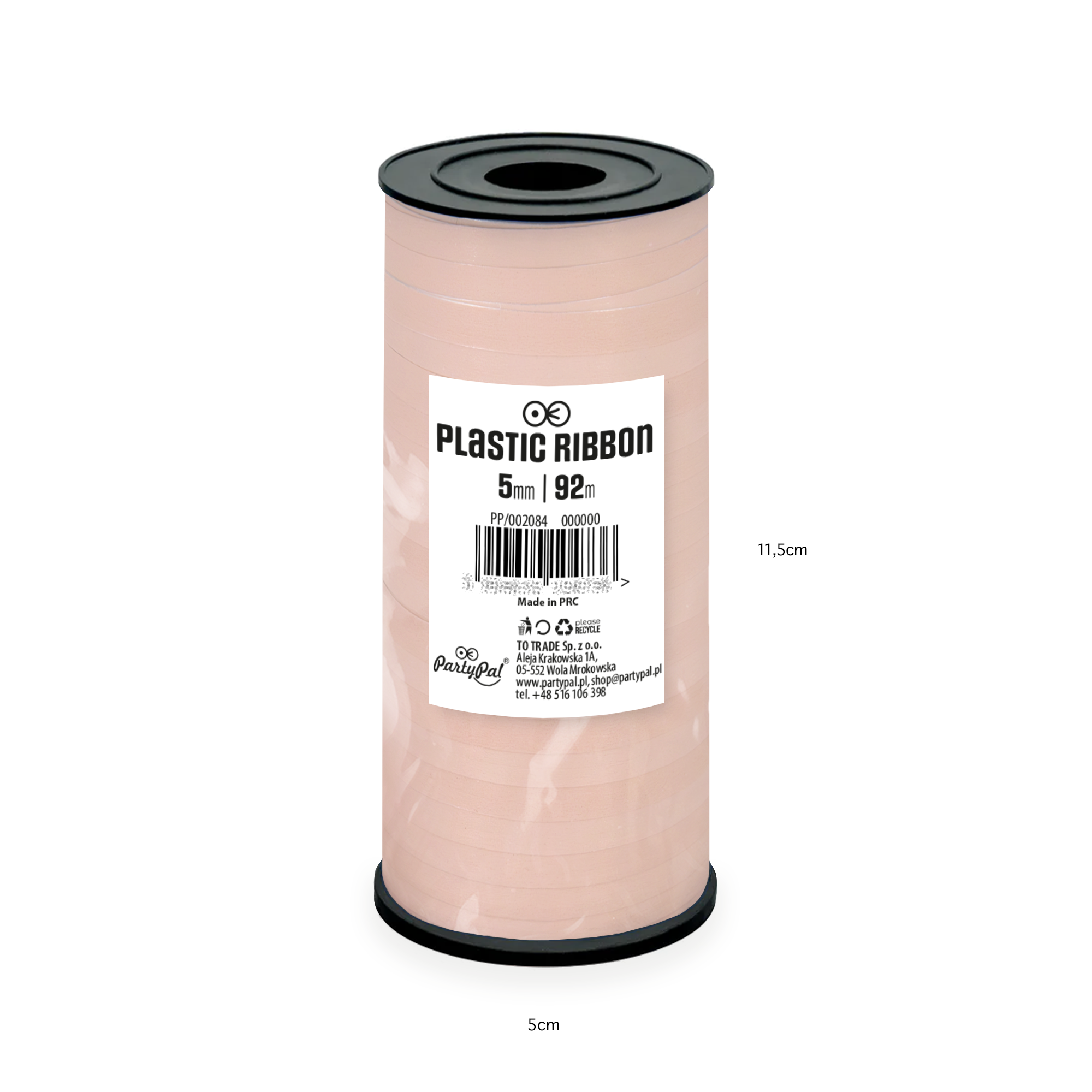 Wstążka plastikowa pudrowy róż pastelowa 92m