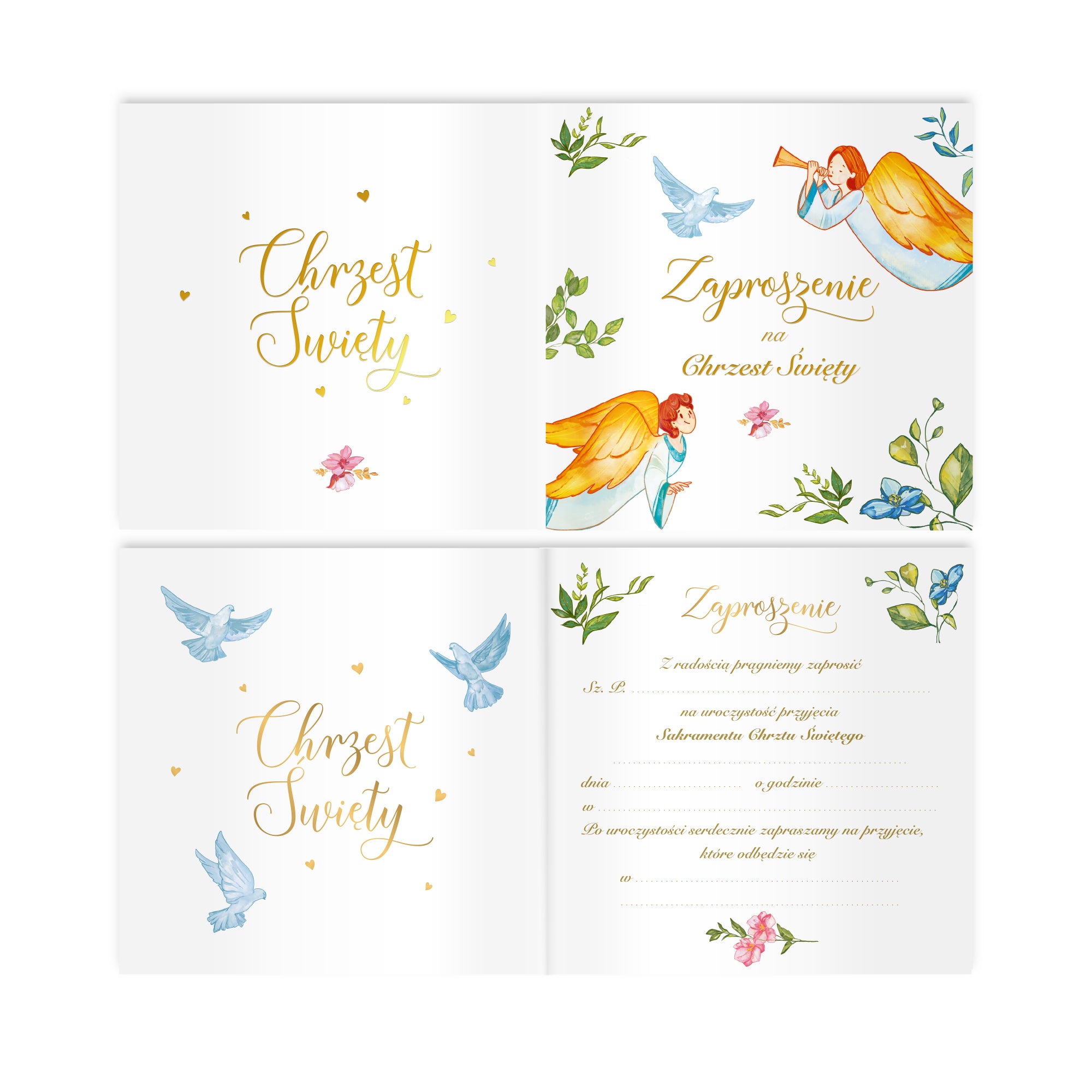 Zaproszenie na chrzest z kolekcji Anioły - 4 strony