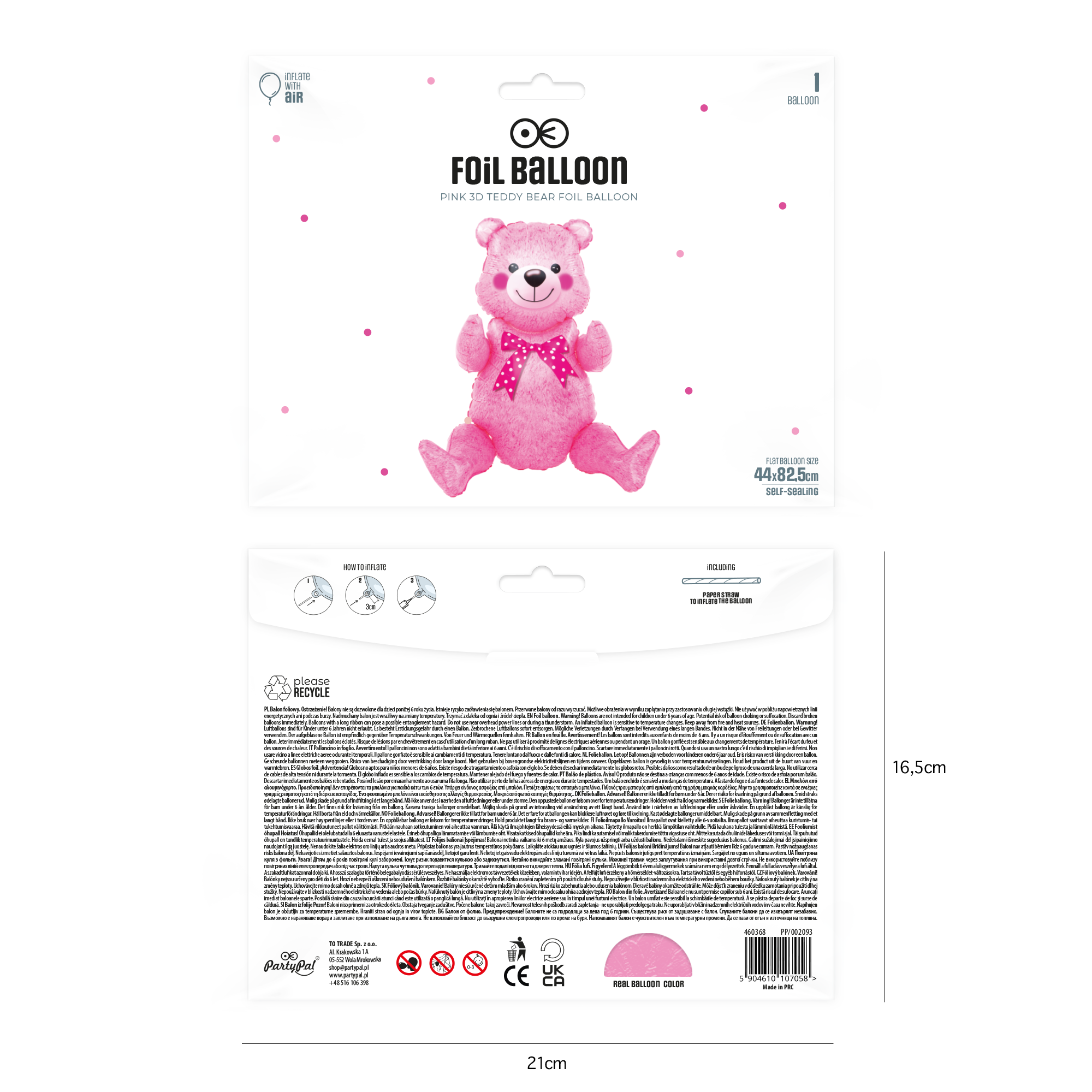 Balon foliowy Miś siedzący różowy 44x82,5cm