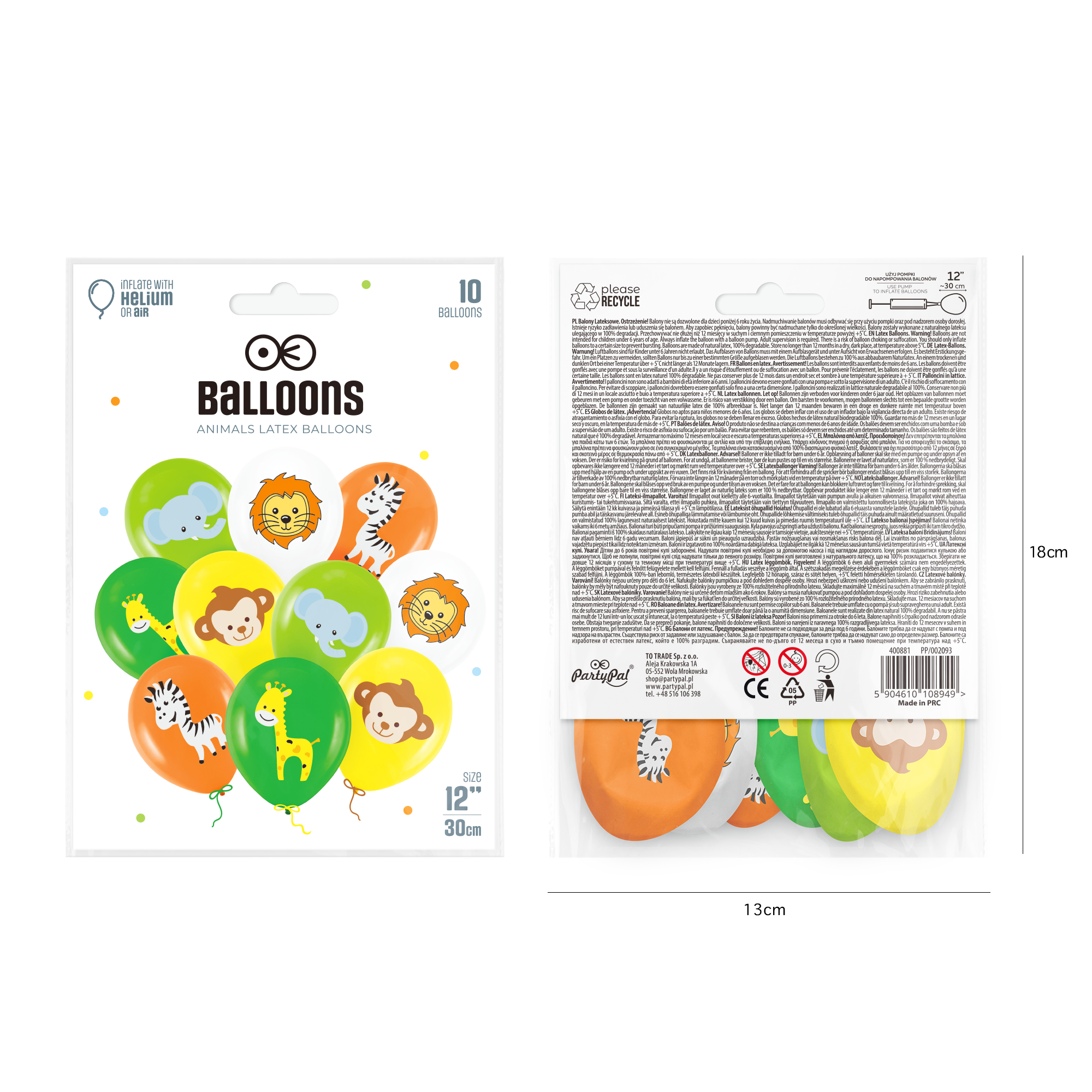 Balony Zwierzątka kolor mix 12cali 10szt.