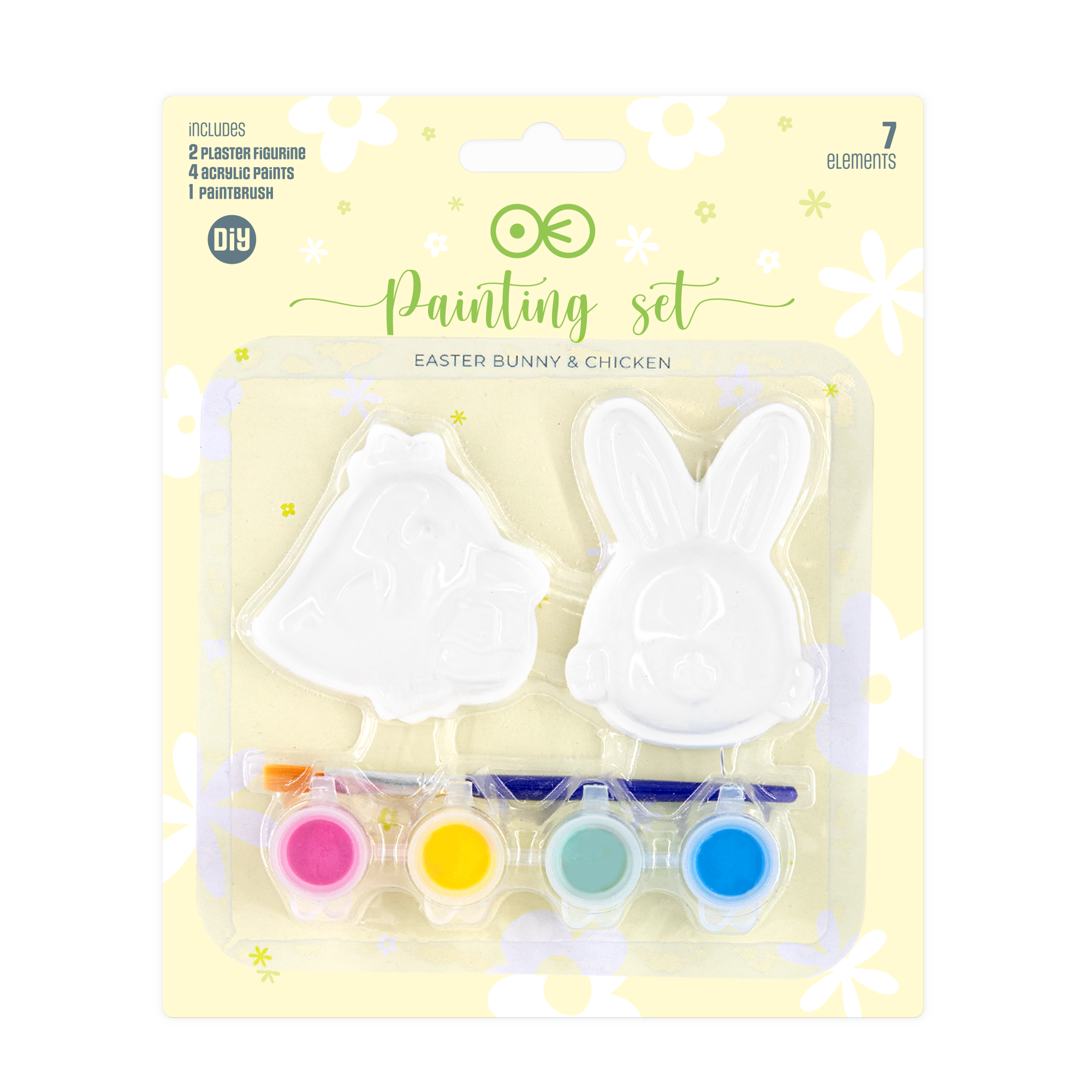 Dekoracje wielkanocne z gipsu do malowania: 1 szt. kurczak, 1 szt. zajączek