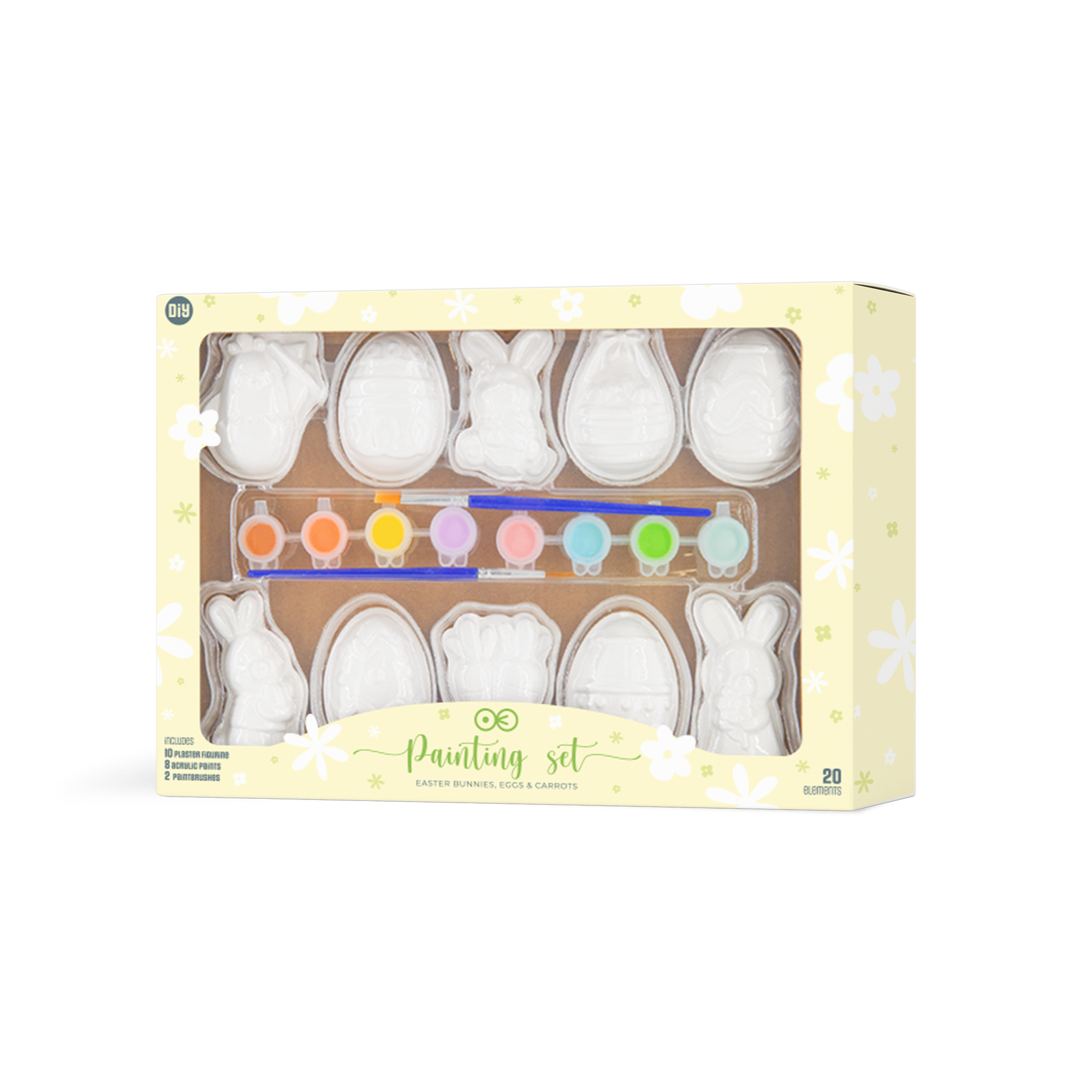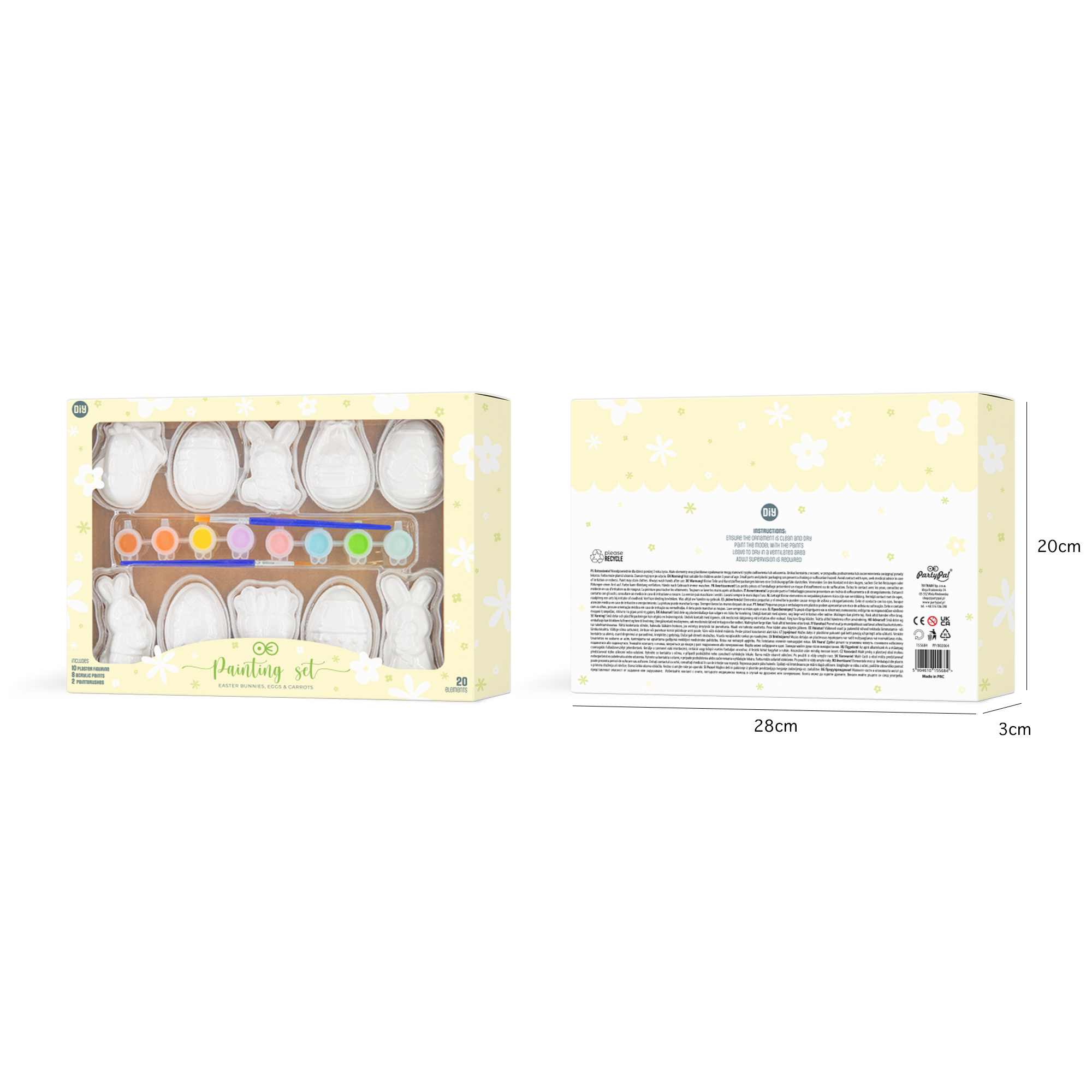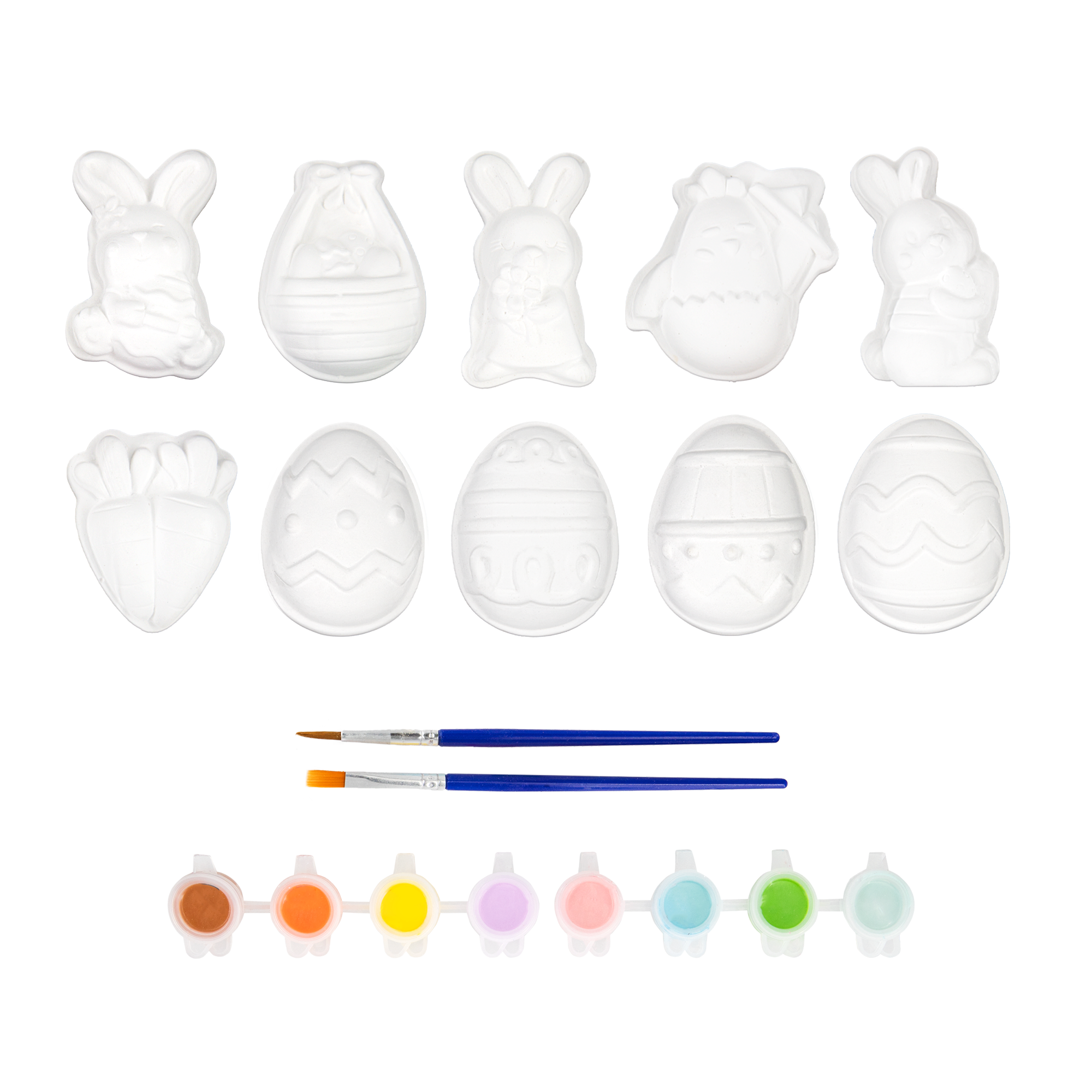 Dekoracje wielkanocne do malowania 10 szt. różne figurki: jajka, zajączki, marchewki, kurczaki i koszyczek