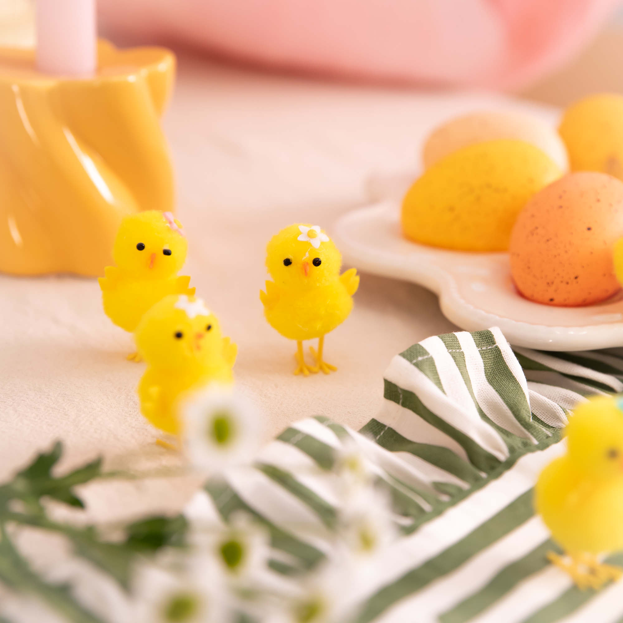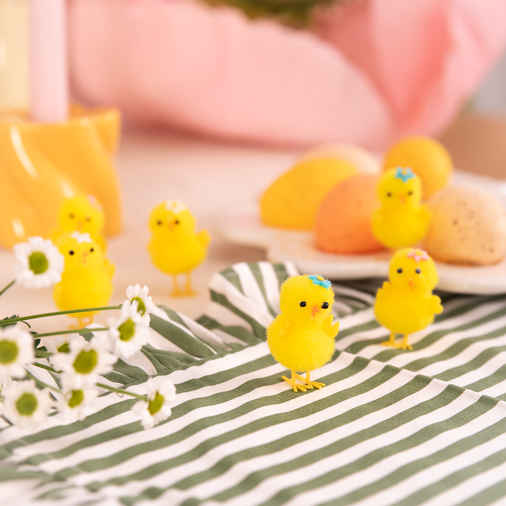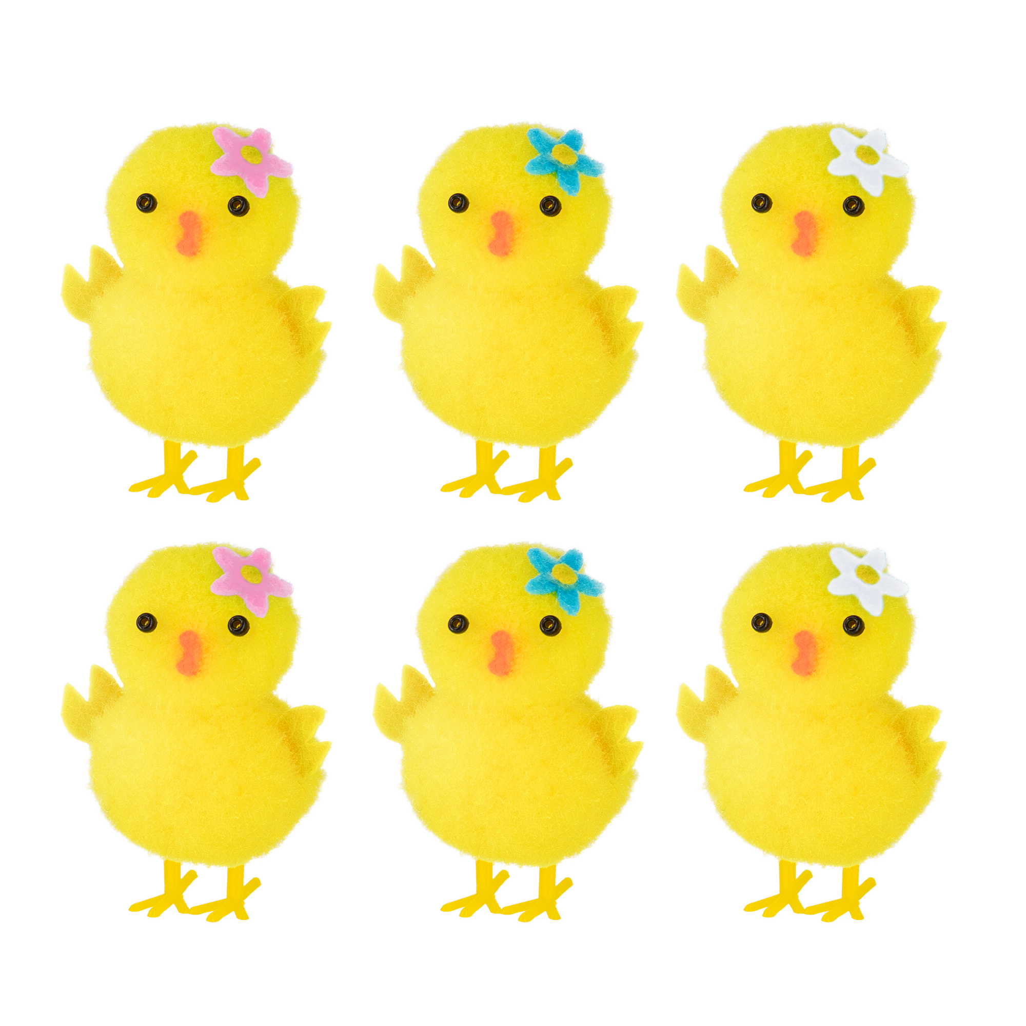 Dekoracje wielkanocne pudełko Kurczak z kwiatkiem 4,5 cm / 6 szt.