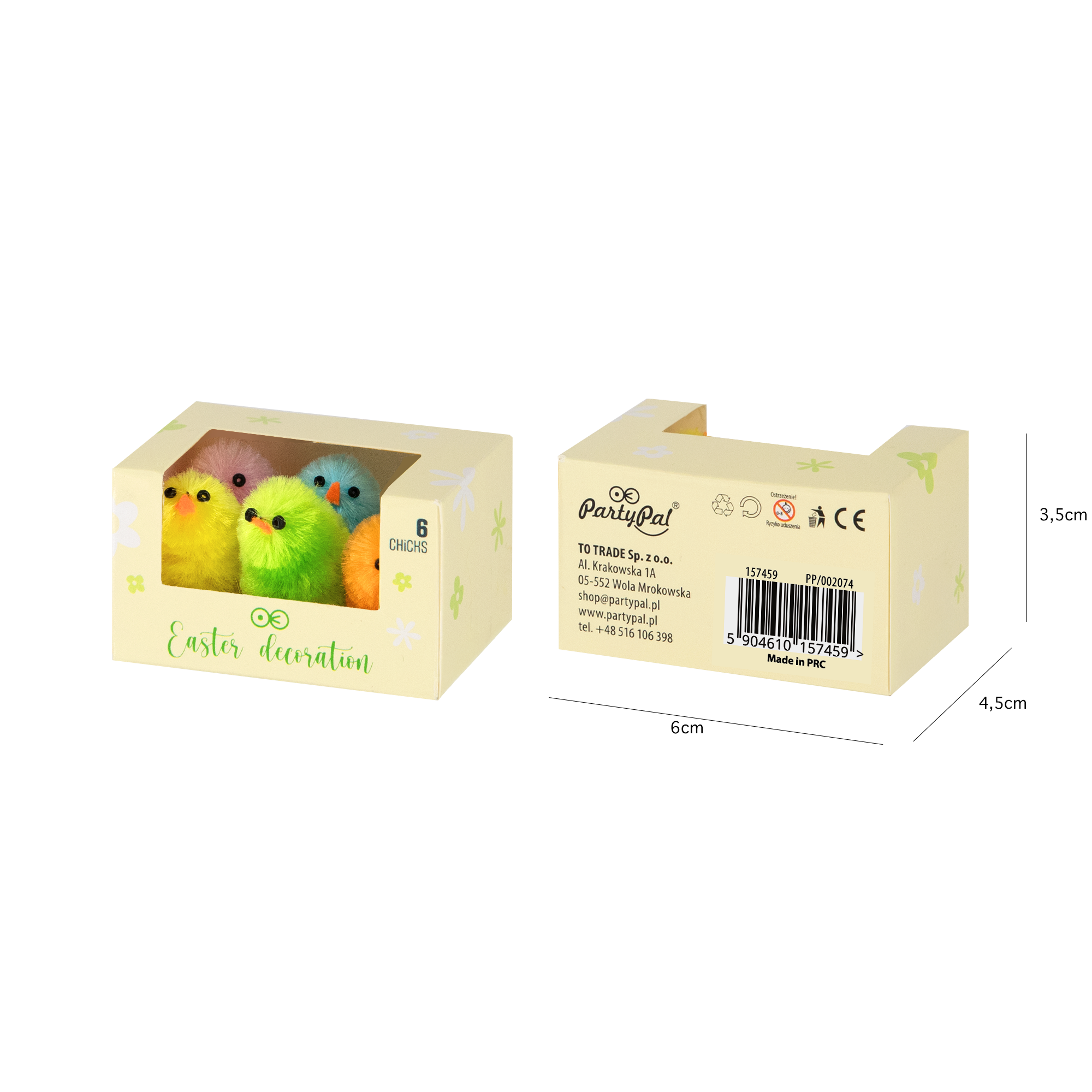 Dekoracje wielkanocne pudełko Kurczaki 3,5 cm kolor mix 6 szt.