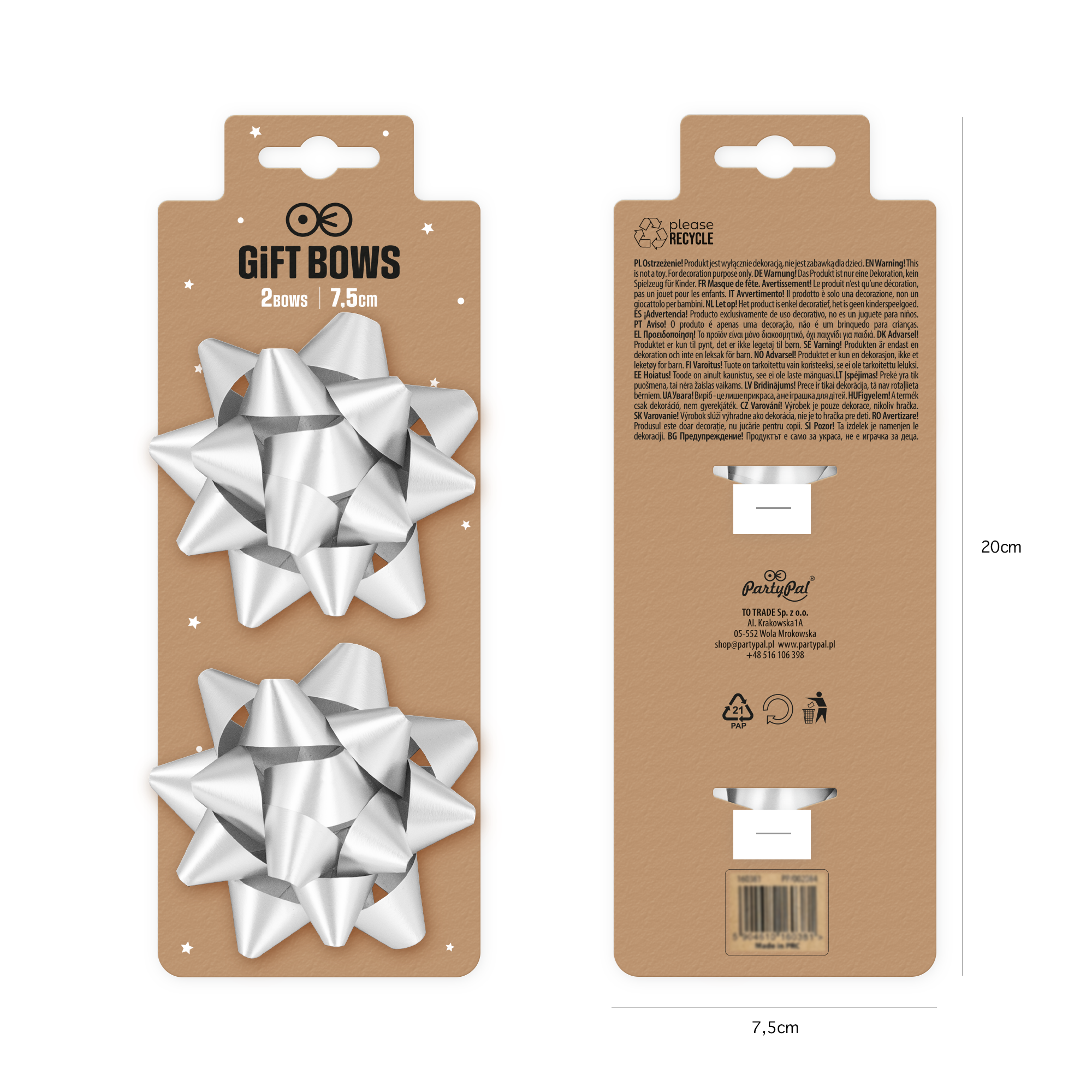 Kokarda prezentowa matowa srebrna 3 cale 2 szt.