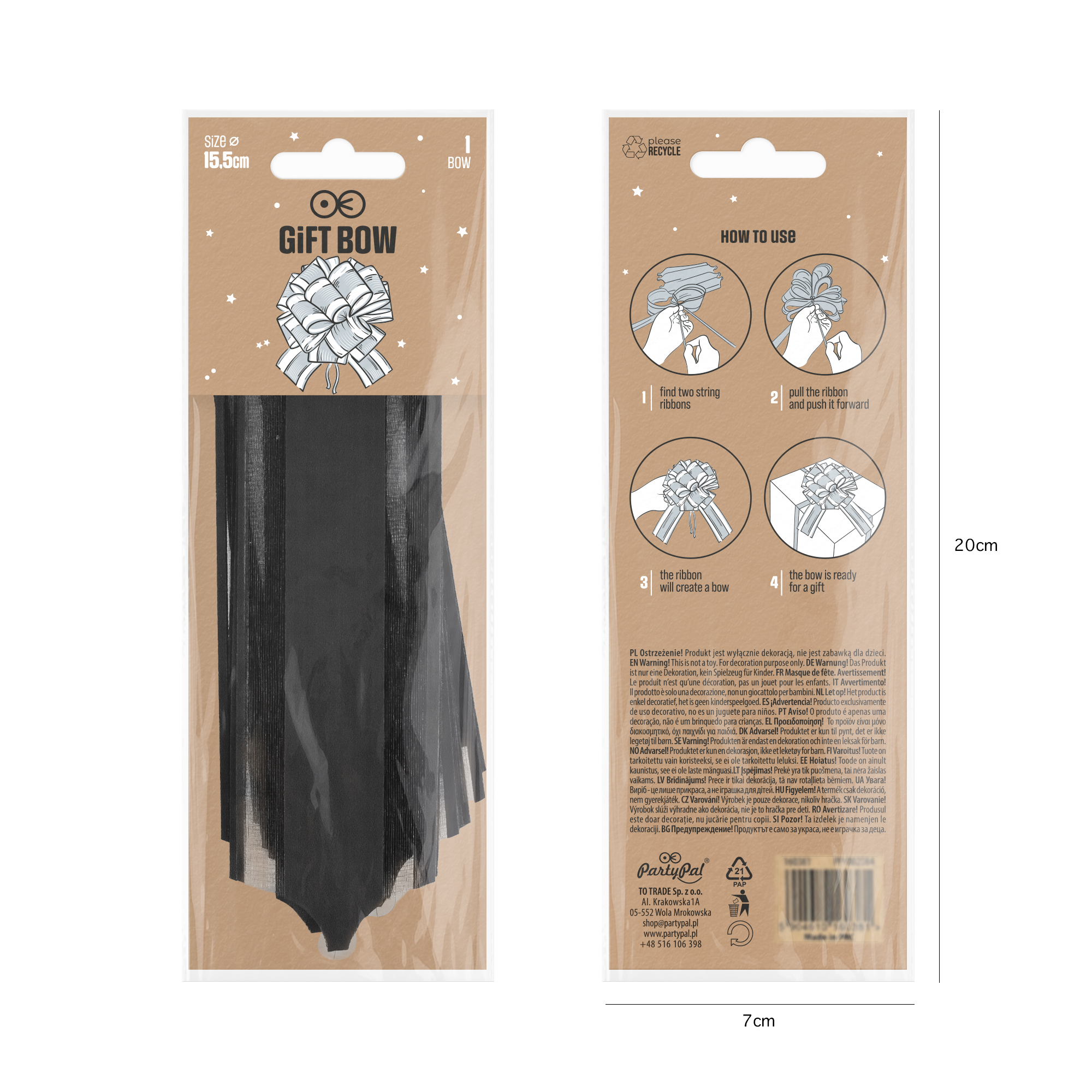 Kokarda ściągana prezentowa w kolorze czarnym to praktyczny i stylowy sposób na ozdobienie każdego upominku. Kokarda jest łatwa w użyciu – wystarczy pociągnąć za specjalnie przygotowane wstążki, aby w ciągu kilku sekund uzyskać efektowną ozdobę.