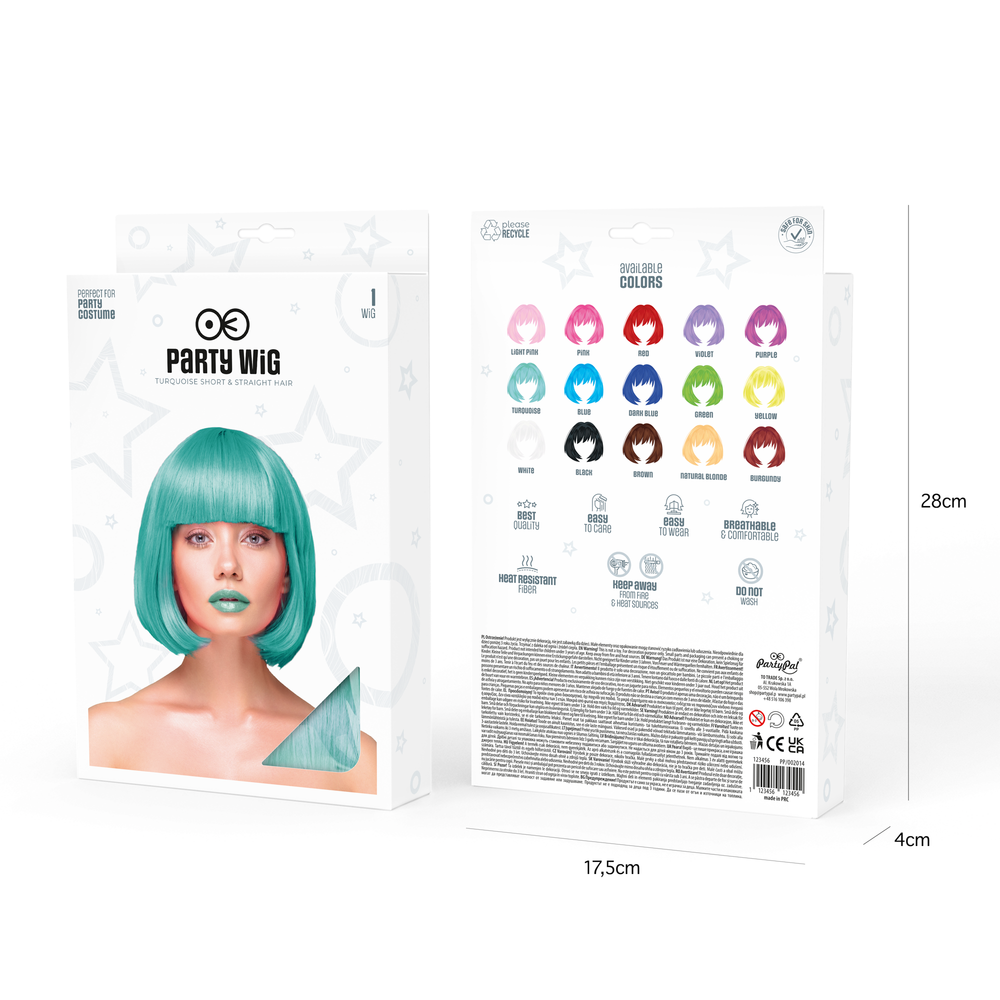 Peruka imprezowa włosy krótkie proste turkusowe