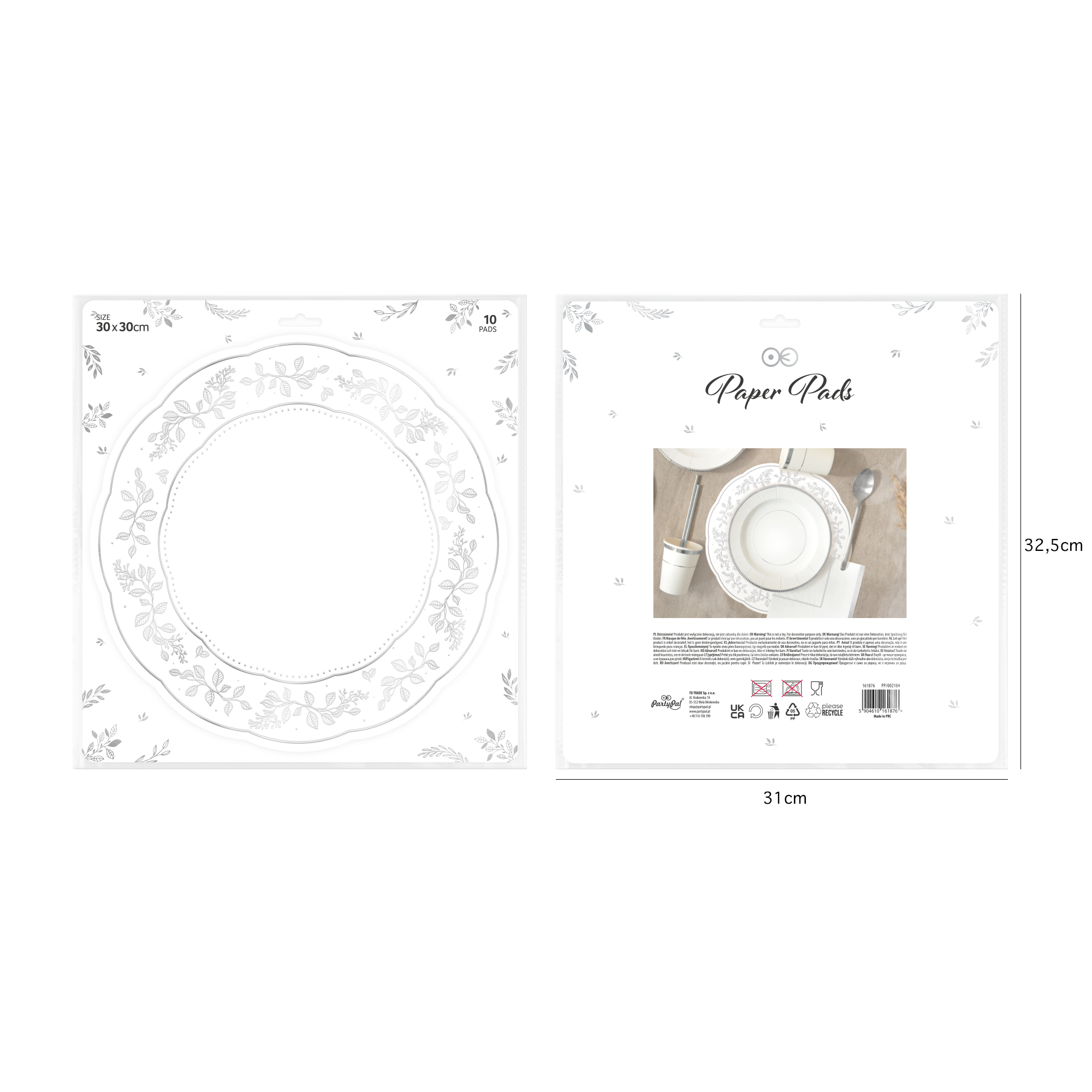 Podkładka pod zastawę papierowa biało-srebrna 10 szt.