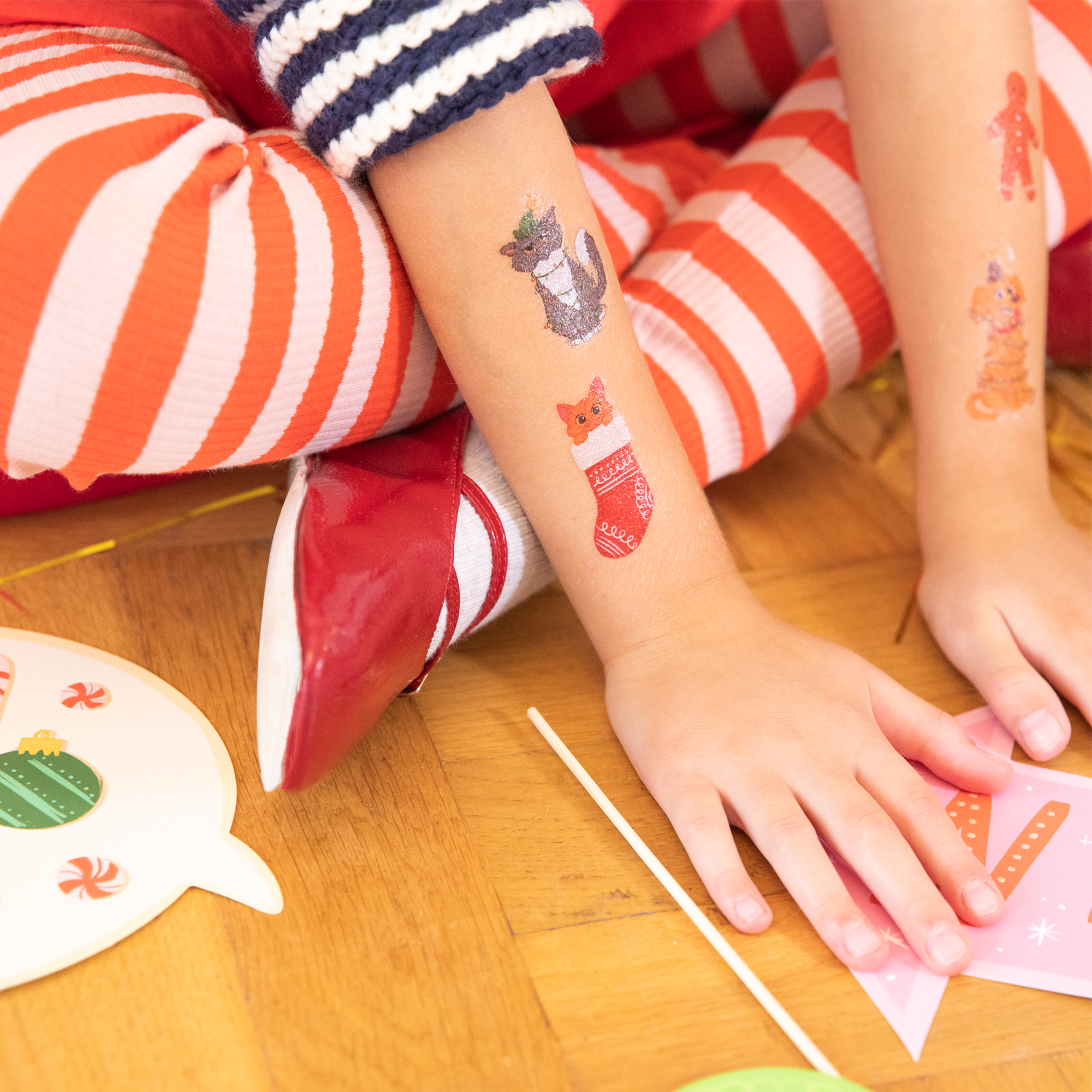 Tatuaże zmywalne Boże Narodzenie z charakterystycznymi dla tego okresu motywami będą atrakcją na każdym rodzinnym spotkaniu. W zestawie znajdują się kolorowe tatuaże z podobiznami Mikołaja, choinki, pierniczka czy bałwanka oraz wiele innych. Atrakcyjna grafika zachęci do zabawy nie tylko najmłodszych.