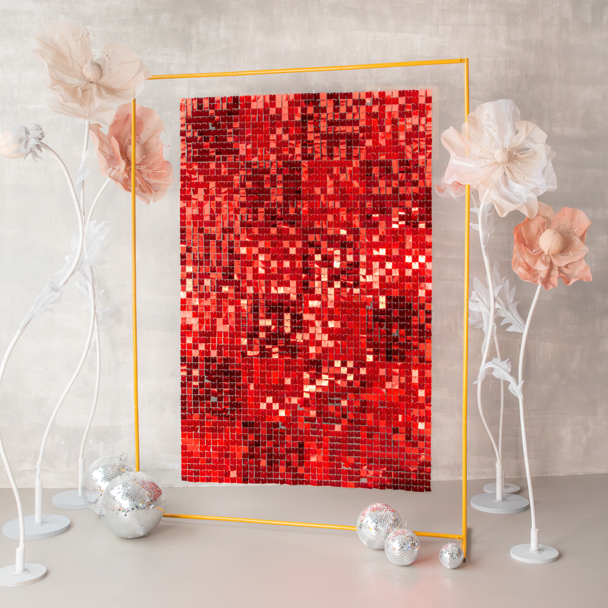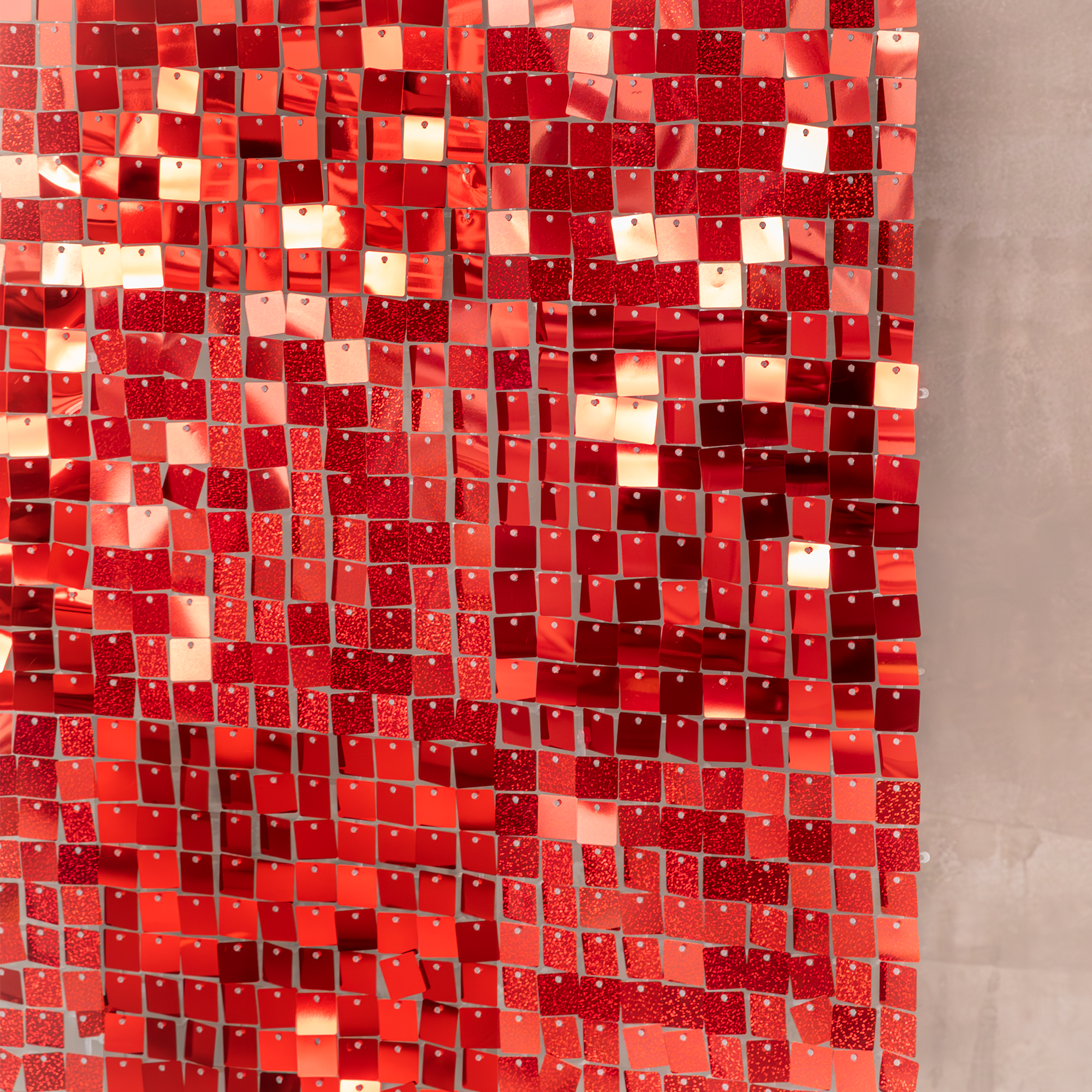 Seria paneli dekoracyjnych, dzięki którym można stworzyć atrakcyjne tło do sesji zdjęciowej lub na wystrzałową imprezę. Każdy panel składa się ze 100 pojedynczych, luźno zawieszonych blaszek, które dają niezwykle ciekawy, trójwymiarowy efekt poruszając się na skutek ruchu powietrza. Cekinowa struktura i połysk sprawiają, że efektownie odbijają światło. Idealne na wesele, urodziny, Sylwester czy zabawę karnawałową.