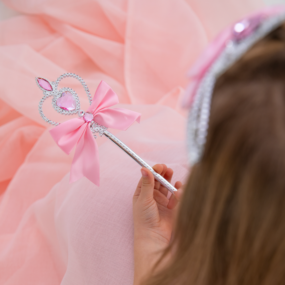 Różdżka Serce z różowymi klejnotami i wstążką srebrna