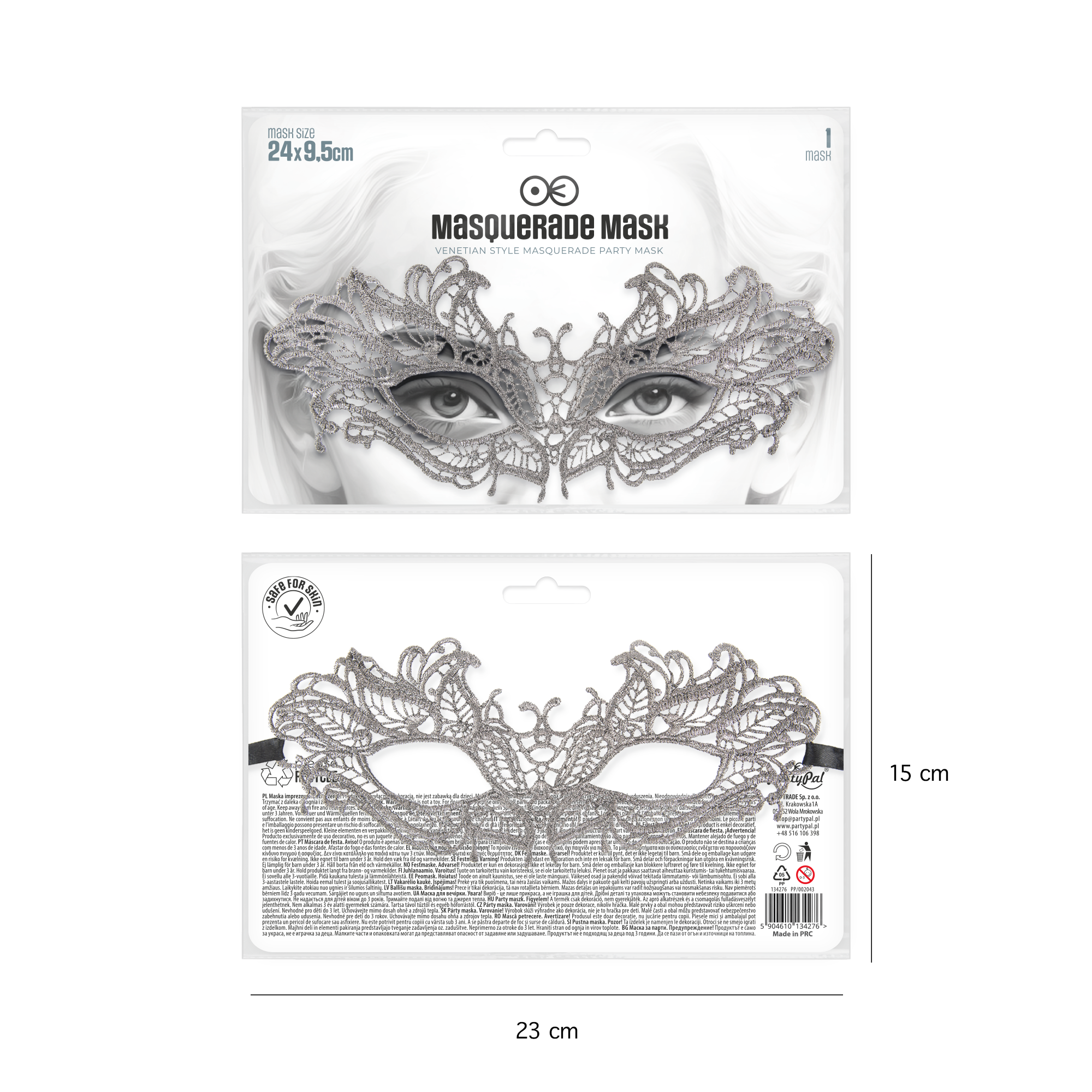 Maska wenecka koronkowa grafitowa 24x9,5cm