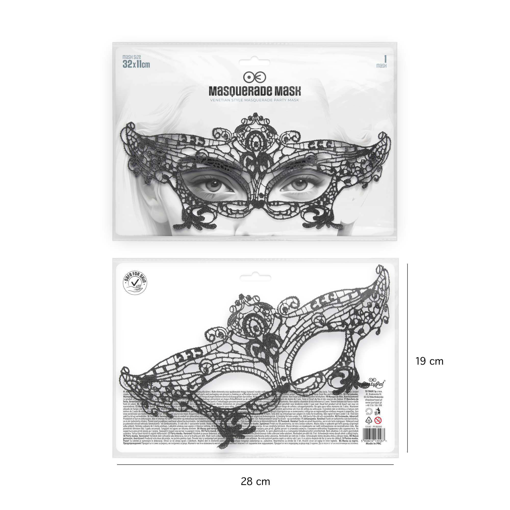 Maska wenecka Motyl koronkowa czarna 32x11cm